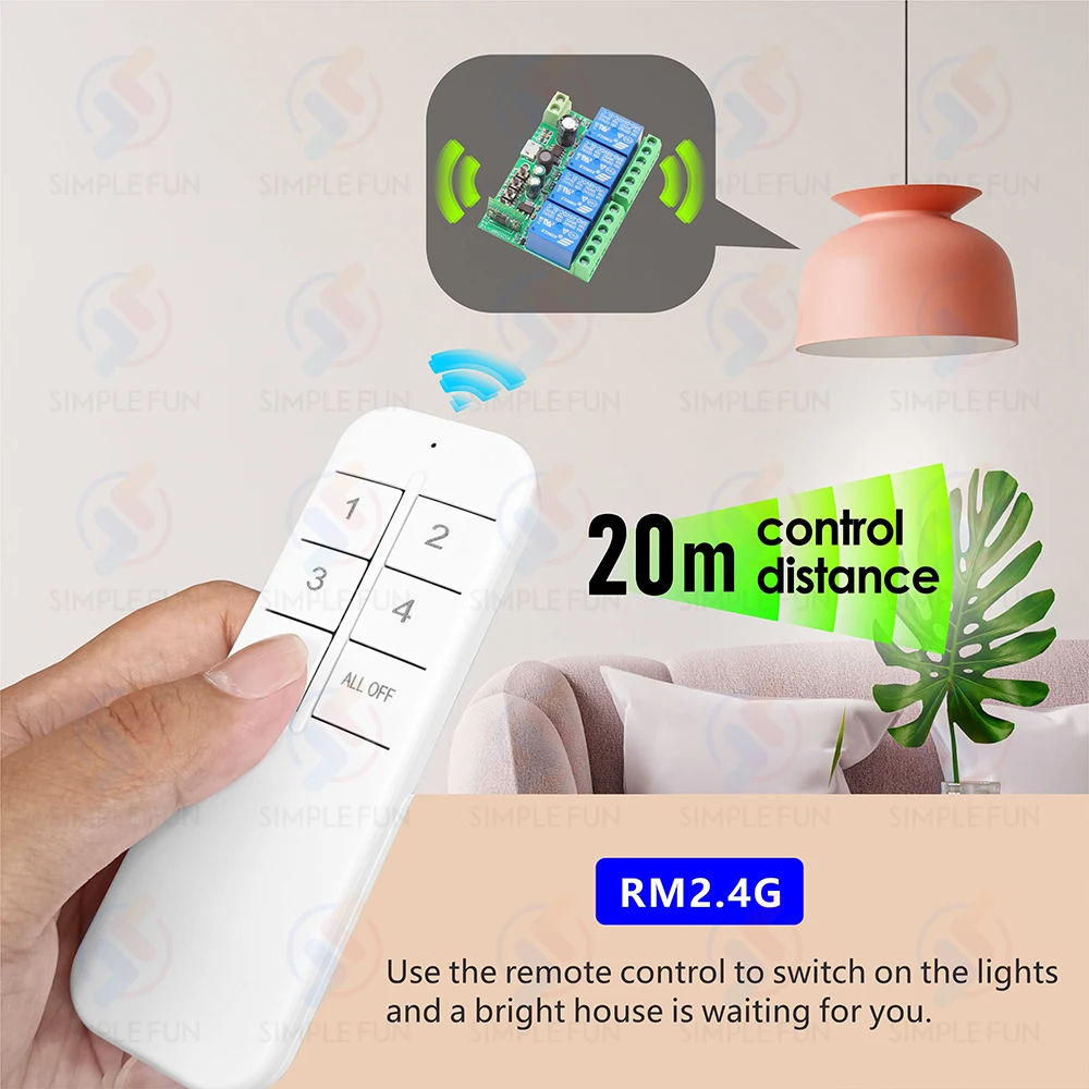 Le récepteur prend en charge la télécommande RM2.4G, et la portée de contrôle peut atteindre 20m dans les zones ouvertes.