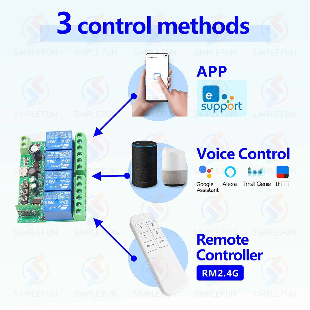 - Control method: WiFi + ewelink 2.4GHz + Voice