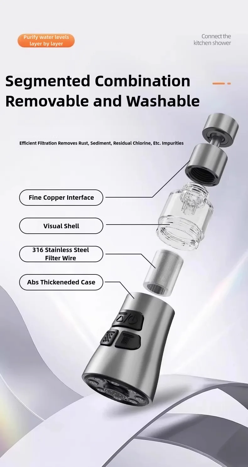 Nom du produit: rallonge de robinet de cuisine 3 en 720° Rotation du robinet de cuisine extractible, accessoires de cuisine