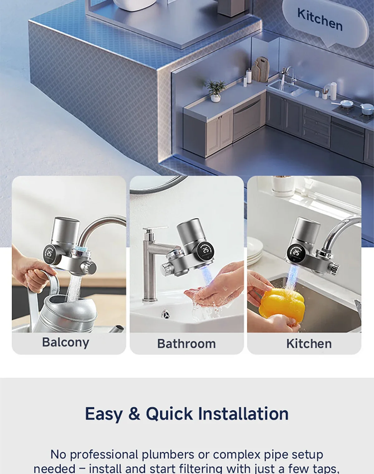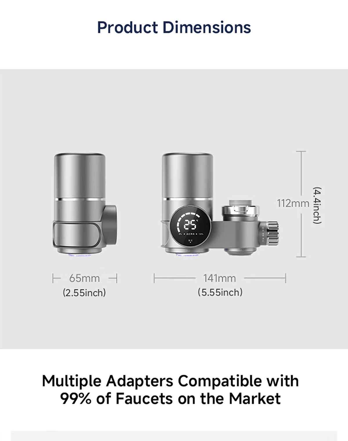 Application : Convient pour la cuisine, la salle de bain, le balcon et autres scènes du robinet, peut être utilisée pour le lavage quotidien de la vaisselle, le lavage des mains, l’eau potable et ainsi de suite.