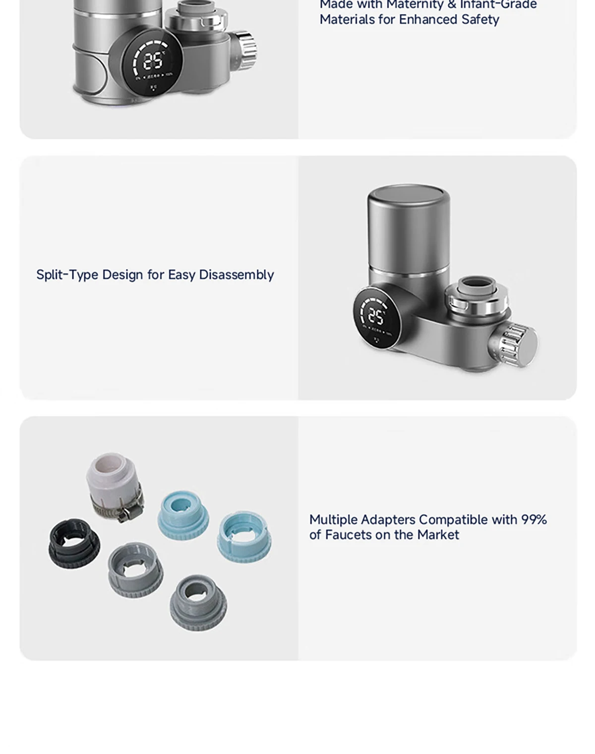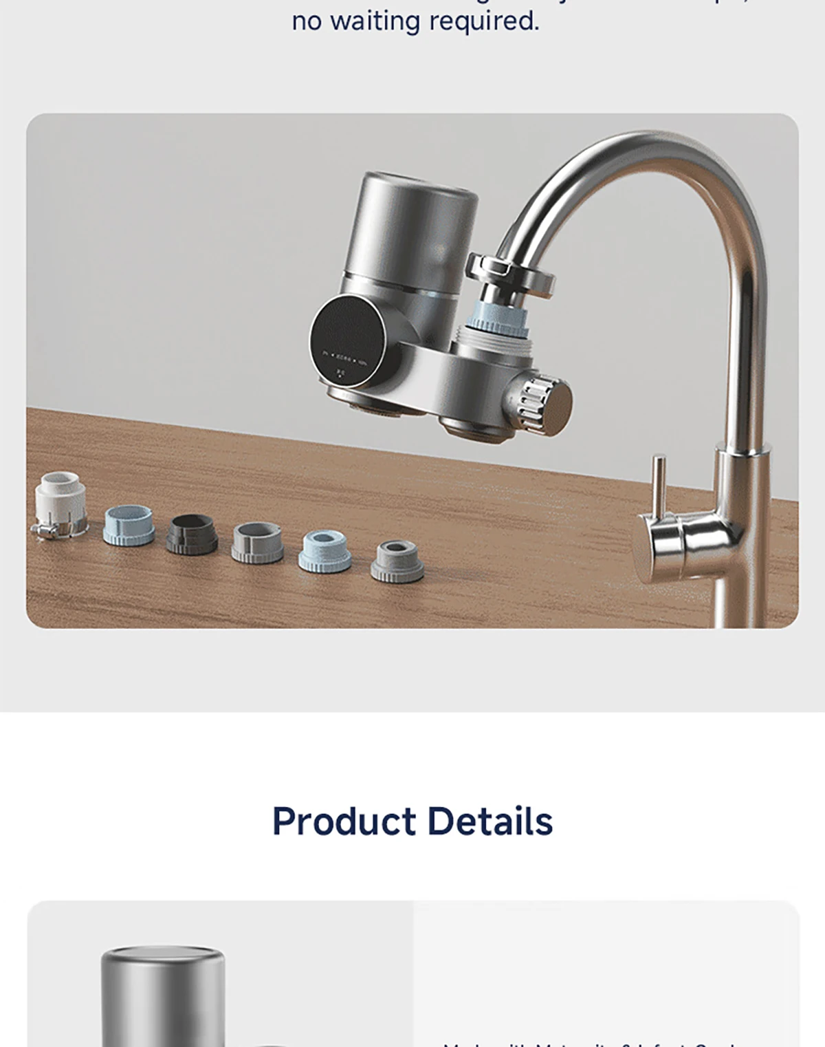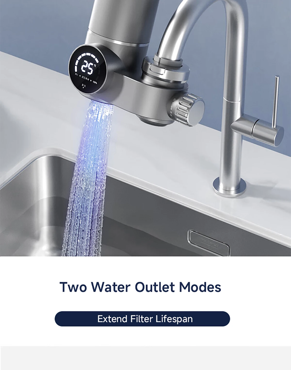 Fonction de filtration : 8 niveaux de filtration efficace et précise, afin grâce au filtre en acier inoxydable 304, tissu non tissé de haute précision, cartouche de charbon actif fritté, matériaux inhibants d’échelle spéciale, cartouche de charbon actif fritté, acier inoxydable à pores fins filtre, membrane haute densité, etc., filtrant efficacement le calcaire, les métaux lourds, E.coli, Staphylococcus aureus, chlore résiduel, etc.