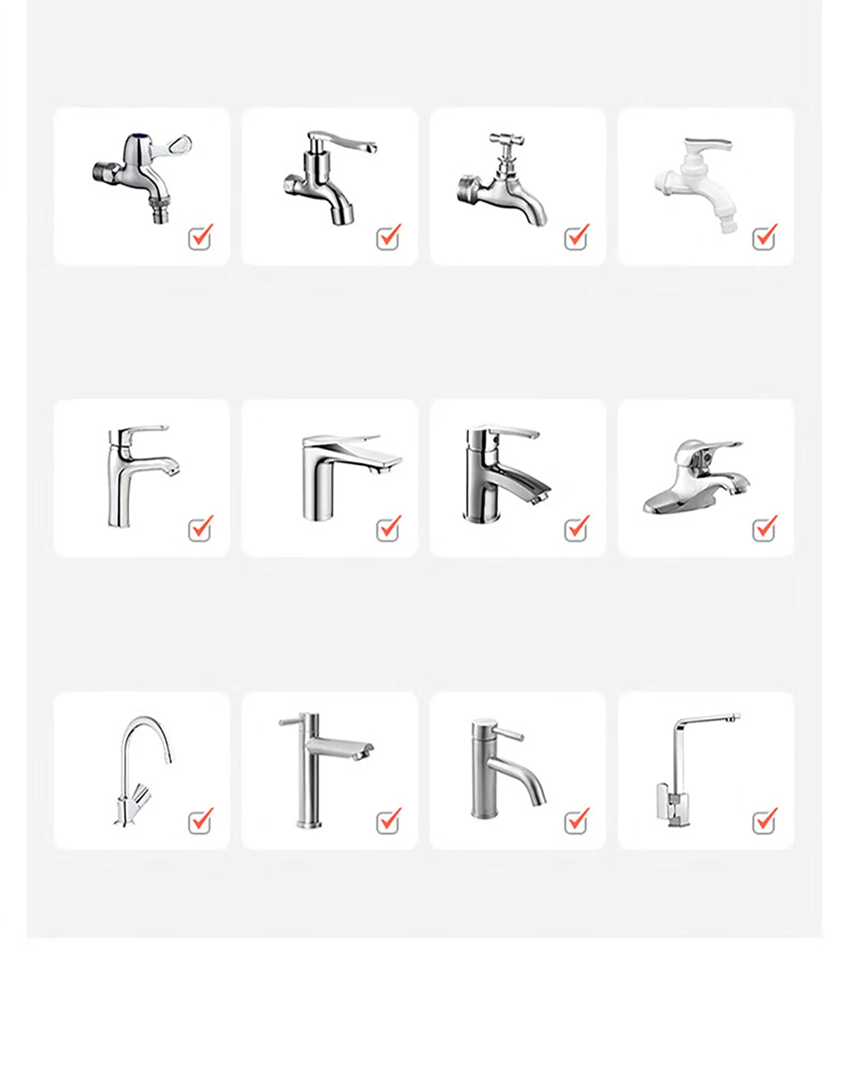 Application : convient pour la cuisine domestique, la salle de bain, le balcon et d’autres scènes du robinet, peut être utilisé pour laver la vaisselle quotidienne, le lavage des mains, l’eau potable, etc.