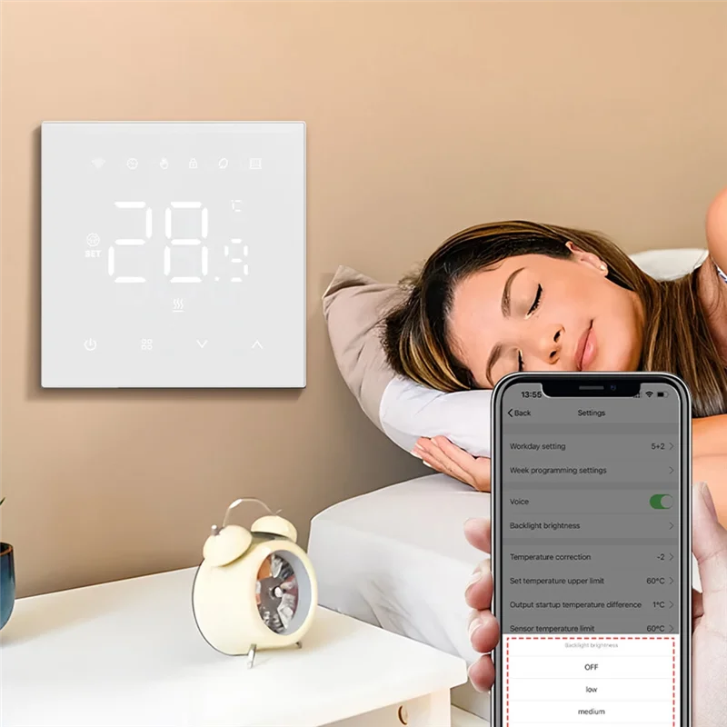 Prend en charge le contrôle de l’application Tuya ou de l’application Smart Life – Vous pouvez modifier la température ou d’autres paramètres avec l’application tuya, même lorsque vous êtes loin de chez vous.