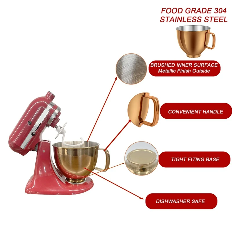Ajustement parfait : notre bol mélangeur est conçu pour les batteurs sur socle à tête inclinable KitchenAid Cassic 4.5QT et Artisan série 5QT.Convient pour K45SS, KSM75, KSM90, KSM100, KSM150, bon remplacement pour KitchenAid KSM5SSBRC.