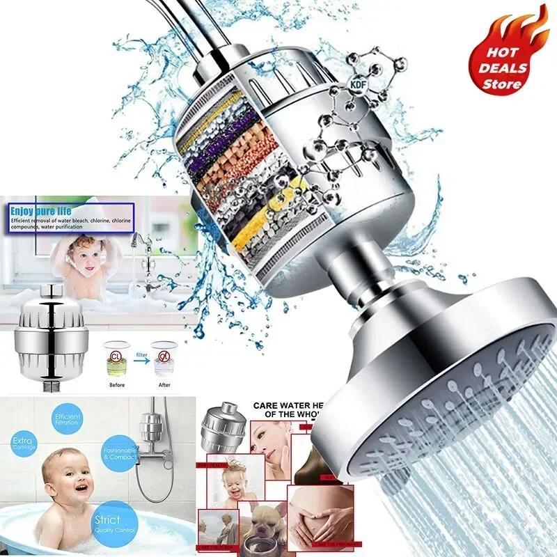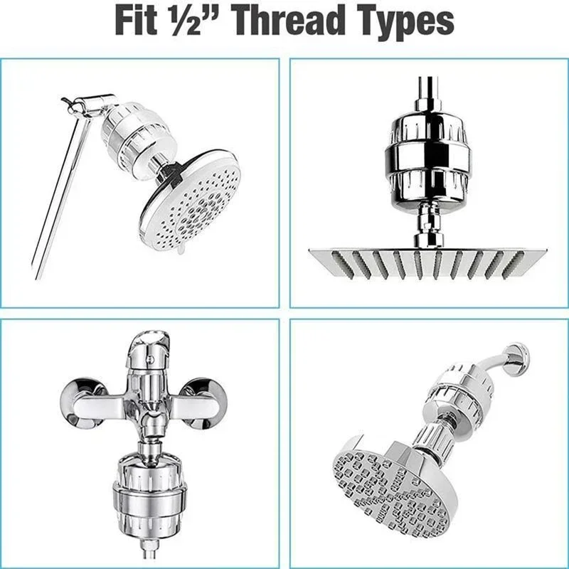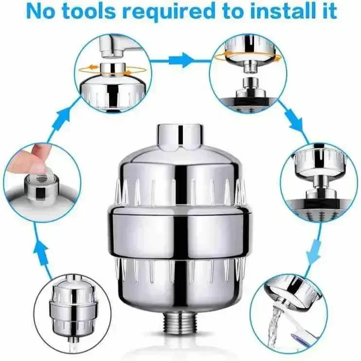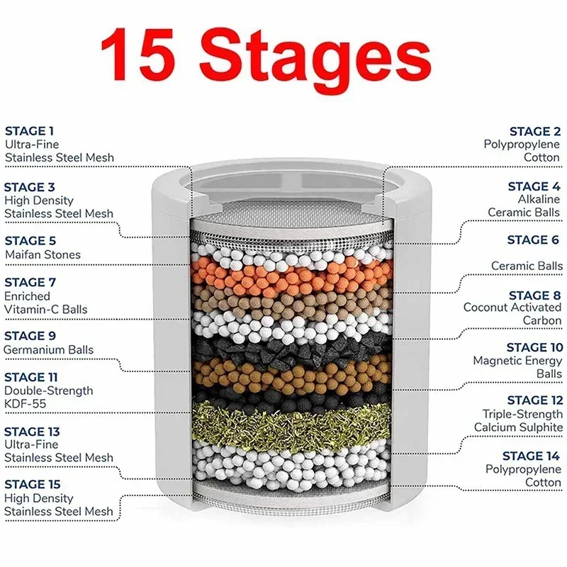 Filtre de douche à 15 étages-Filtre de robinet de cuisine-Filtre à eau dure, élimine le chlore, les métaux lourds et autres sédiments, adoucisseur d’eau à la vitamine C réduit la peau sèche qui démange, les pellicules