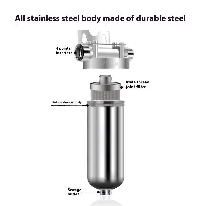 [Matériau spécial] Le filtre 40 microns est en acier inoxydable 316L SUS, la tête principale est en acier inoxydable moulé sous pression et le corps de tasse est en acier inoxydable 304 moulé sous pression monobloc, avec une épaisseur de 1,2 mm. Il a passé 100 000 tests de marteau à eau et un test de pression maximale de 1 000 livres par pouce carrée.
