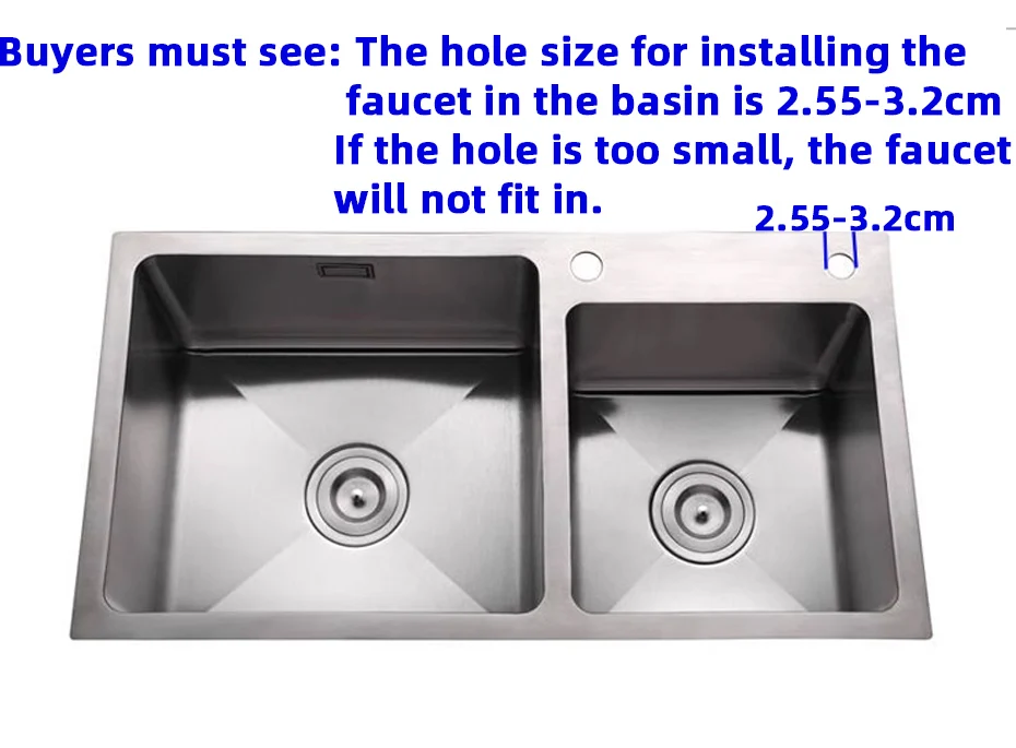 La taille du trou pour installer le robinet dans le bassin est de 2.55 à 3.2cm