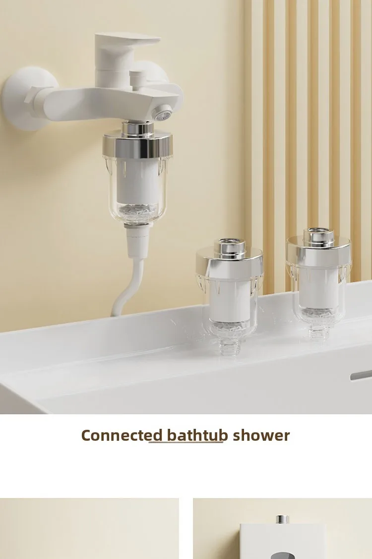 4. Large gamme d’utilisations : le purificateur d’eau peut être utilisé sur le robinet d’arrêt, les prises de douche, diverses prises, c’est un choix de bain parfait pour vos enfants et les animaux domestiques.