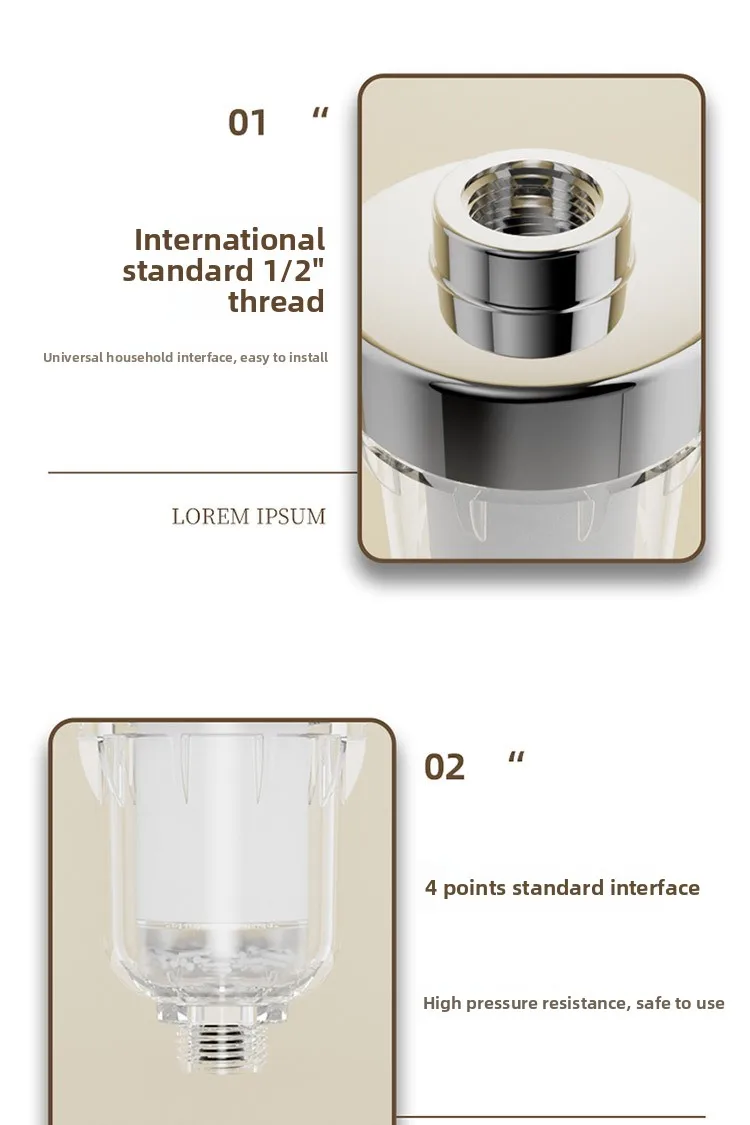 1.Universel : avec interrupteur de connexion universel, le filtre d’arrosage convient à tous les types de douches, l’interface universelle à quatre points convient à 99 % des robinet.