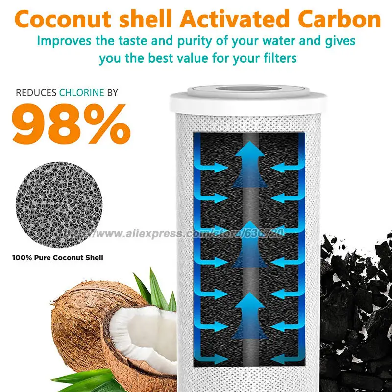 The BB activated carbon block filters are made of 100% pure coconut shell carbon and wrapped with food-grade polypropylene.