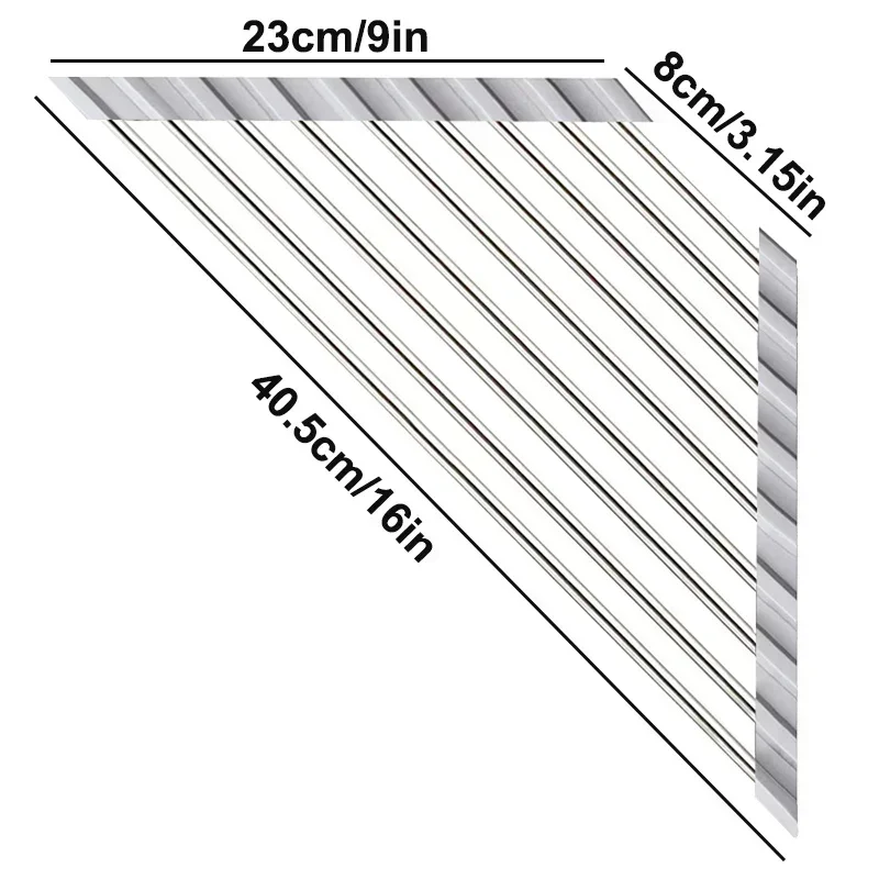 【Petite taille 】 Support de forme triangulaire pour utiliser pleinement l’espace d’angle de votre évier de cuisine. Conçu pour une capacité d’empilage maximale pour sécher efficacement la vaisselle avec un drainage et une ventilation appropriés. Longueur inférieure: 40.5cm/16in, longueur latérale: 23cm/ 9in, longueur supérieure: 8cm/3.15in. Important: Veuillez mesurer la taille de votre évier avant de commander.