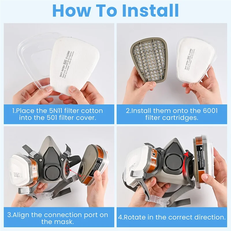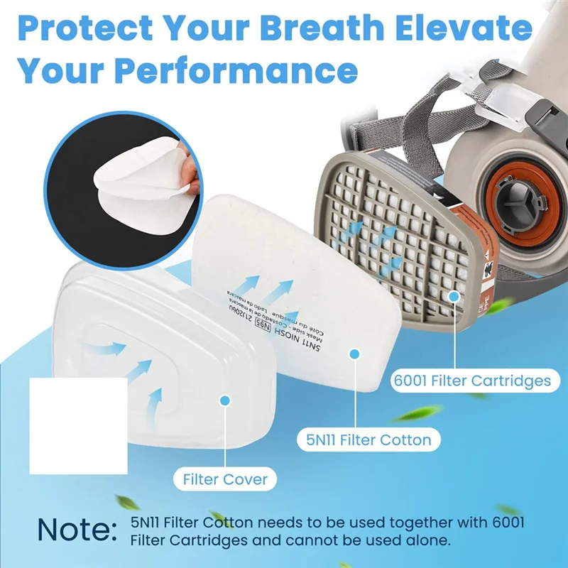 [Compatibilité] Le filtre 5N11 doit être installé sur la cartouche 6001 et ne peut pas être utilisé seul.Compatible avec les respirateurs 6200/6502/6800/7502/FF402.