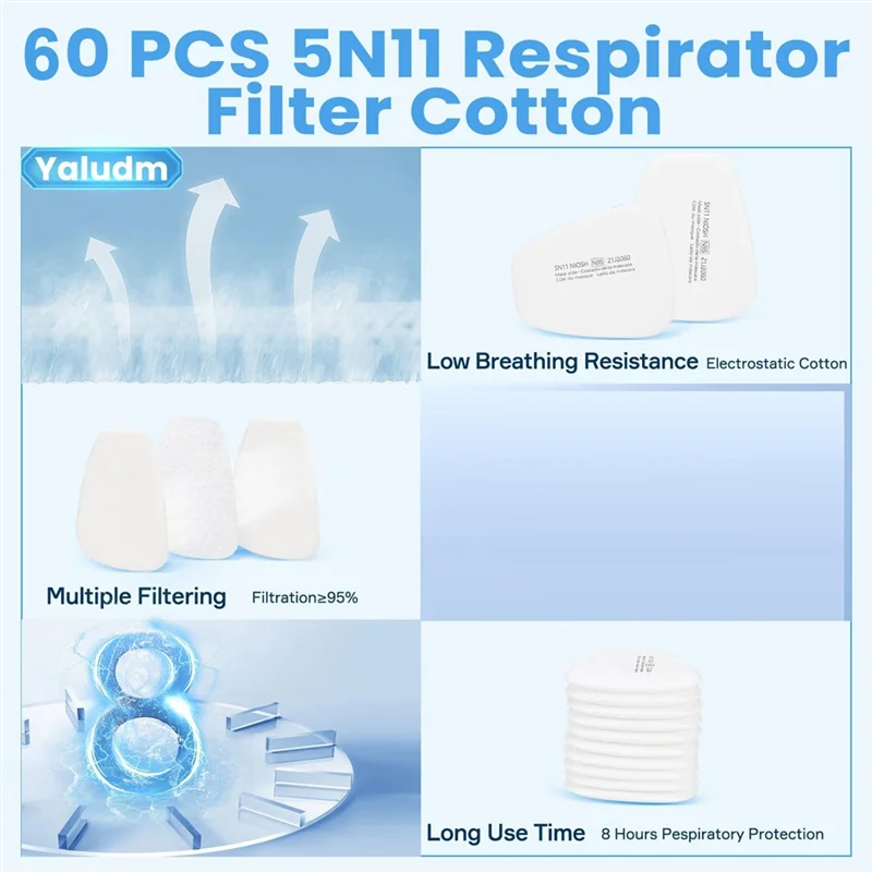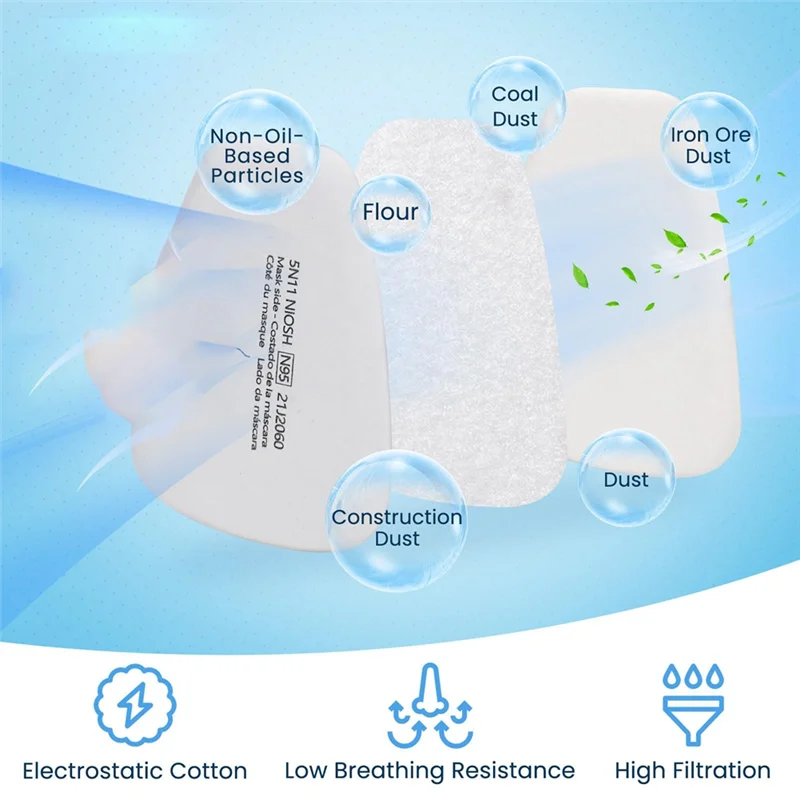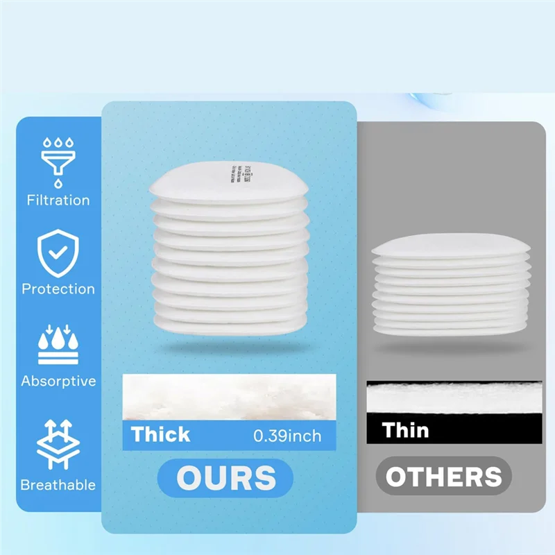 [Efficacité de filtration ≥ 95 %] Notre coton filtrant électrostatique de haute qualité a une capacité d’adsorption plus élevée et une faible résistance respiratoire, ce qui peut mieux défendre notre santé respiratoire.Cartouches respiratoires en coton pour une large gamme de particules non grasses telles que la poussière, la brume PM2,5, le pollen, les vapeurs de soudage, etc.