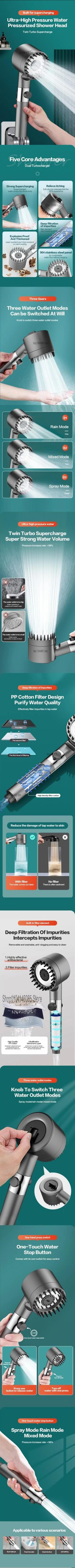 • rain shower head: high pressure multifunctional shower water filter shower