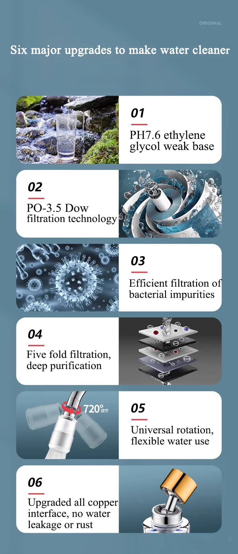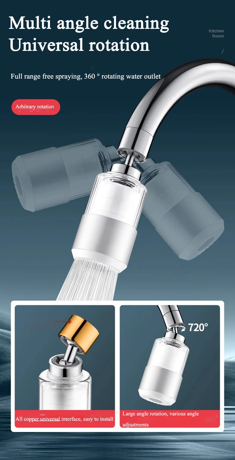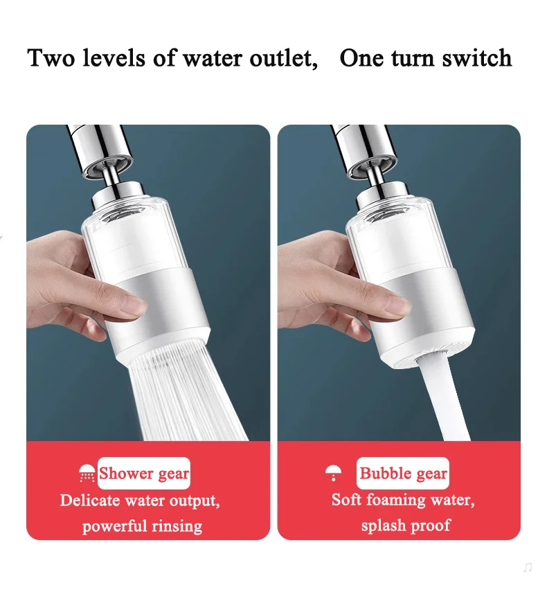 Filtre de robinet à 2 vitesses, mousseur de cuisine, douche, purificateur d’eau rotatif universel, outils de filtre pour cuisine, salle de bains, douche domestique