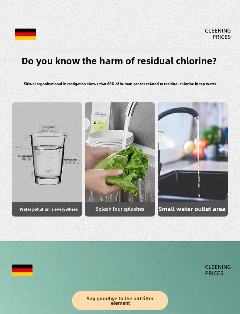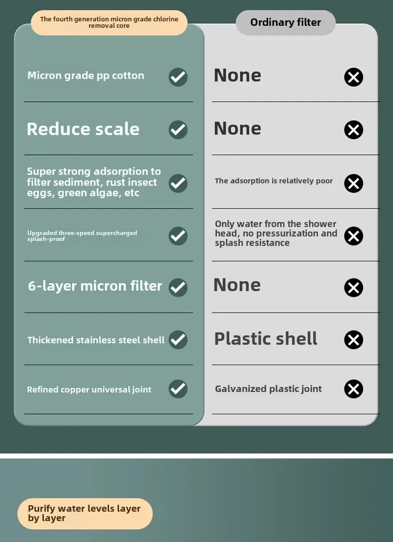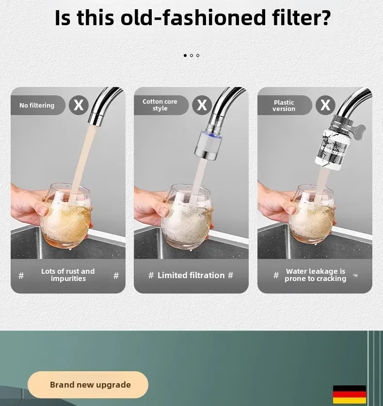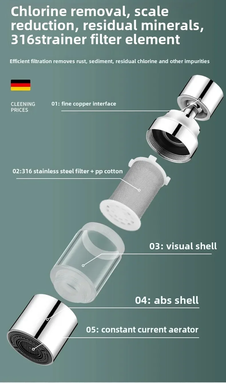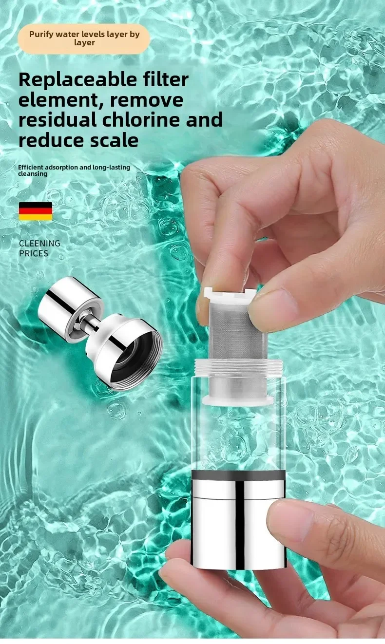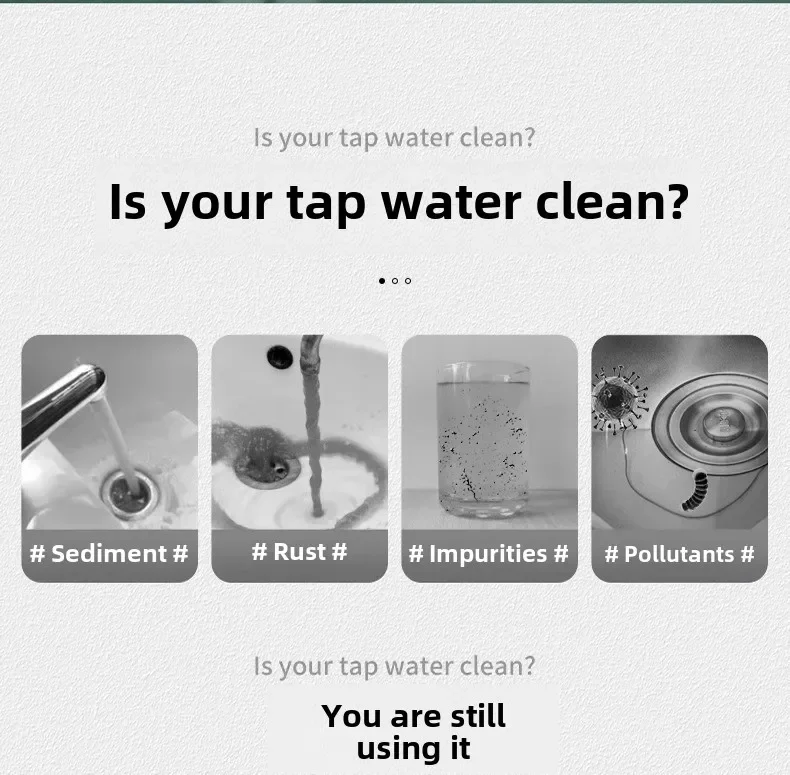 *Double système de filtration : ce filtre de robinet intègre un mécanisme de filtration à double couche qui élimine efficacement les impuretés de l’eau du robinet, pour vous assurer d’avoir de l’eau potable propre et sûre à tout moment.