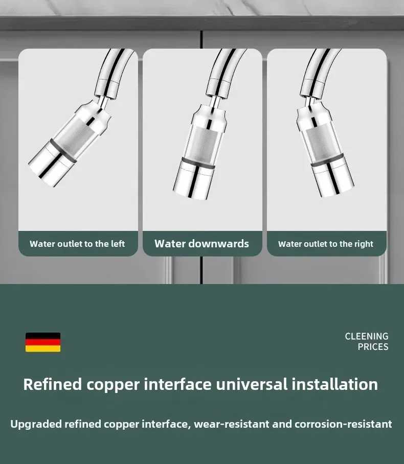 *Conception rotative : le filtre présente une conception flexible qui permet une rotation facile, ce qui facilite l’ajustement de la direction du jet d’eau en fonction de vos besoins.