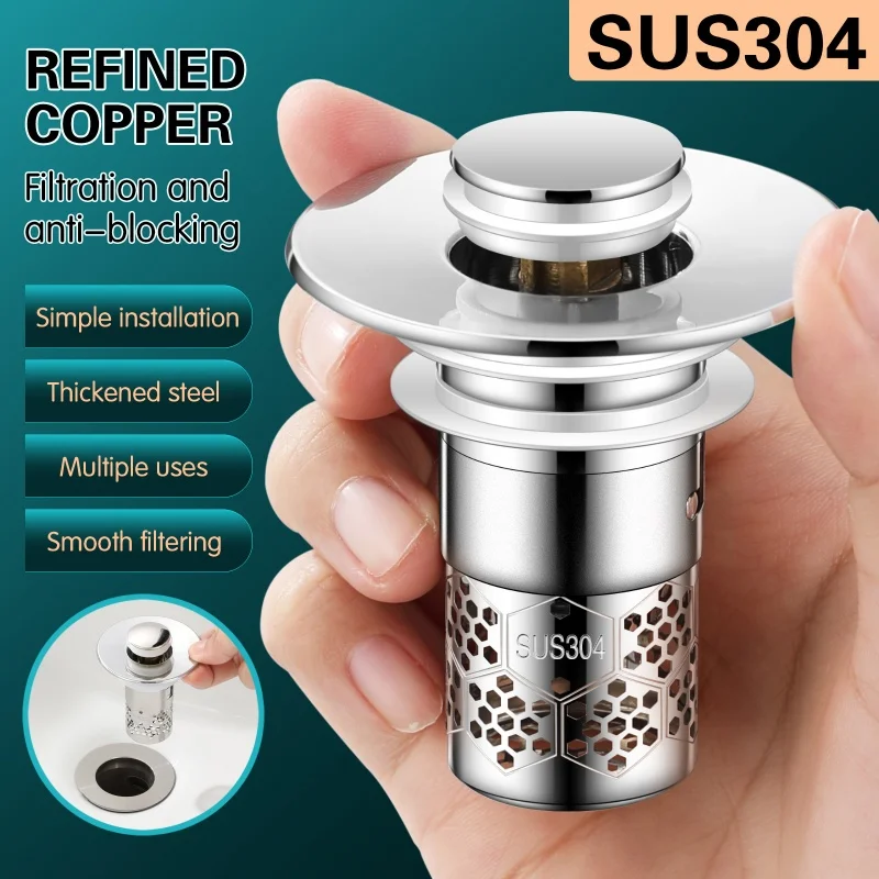 Filtre de vidange de lavabo Pop-Up, bouchon de noyau de rebond, collecteur de cheveux, filtre d’évier de douche, cuisine salle de bains, accessoire universelFiltre de vidange de lavabo Pop-Up, bouchon de noyau de rebond, collecteur de cheveux, filtre d’évier de douche, cuisine salle de bains, accessoire universel