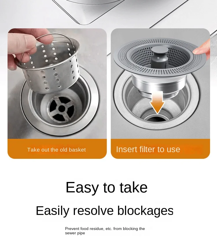Filtre de vidange d’évier de cuisine US/EU, noyau de rebond, bouchon d’évier en acier inoxydable, bouchon de vidange de cuisine, écran filtrantFiltre de vidange d’évier de cuisine US/EU, noyau de rebond, bouchon d’évier en acier inoxydable, bouchon de vidange de cuisine, écran filtrant