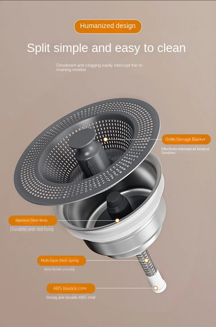 Filtre de vidange d’évier de cuisine US/EU, noyau de rebond, bouchon d’évier en acier inoxydable, bouchon de vidange de cuisine, écran filtrant