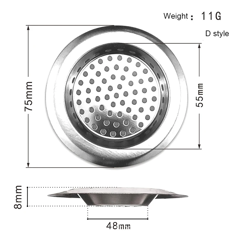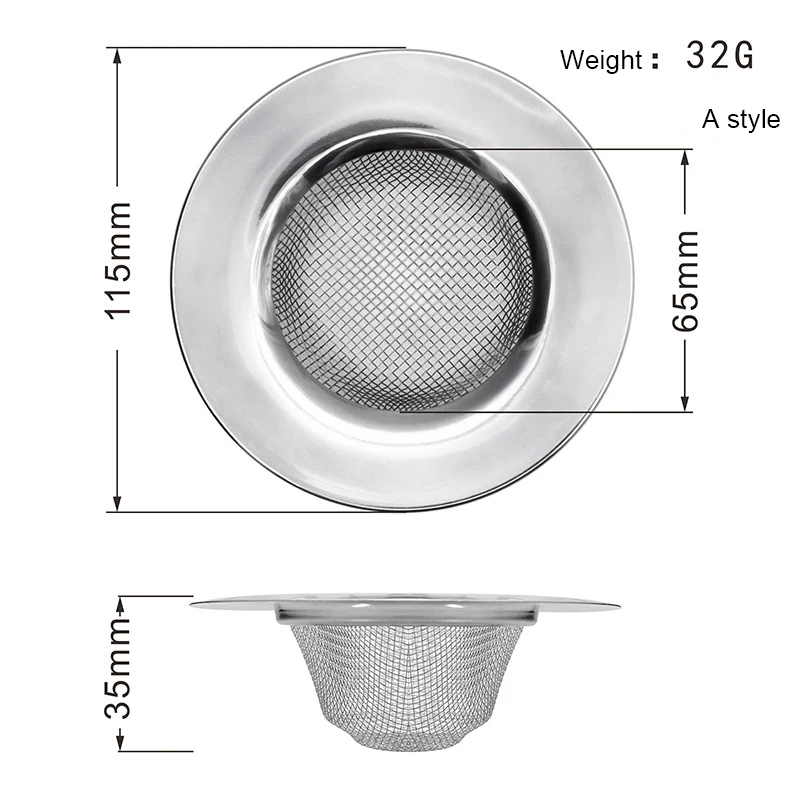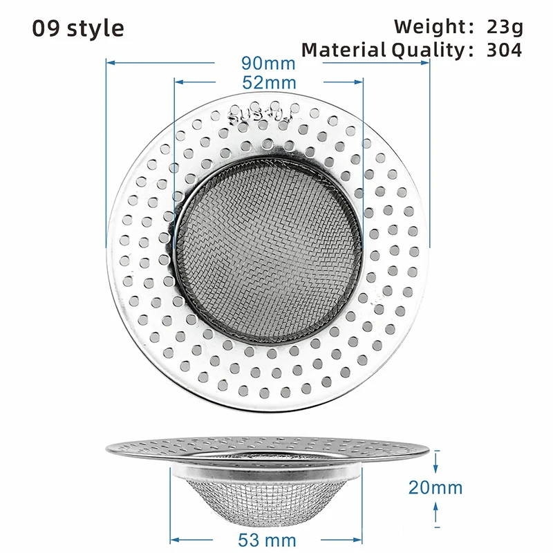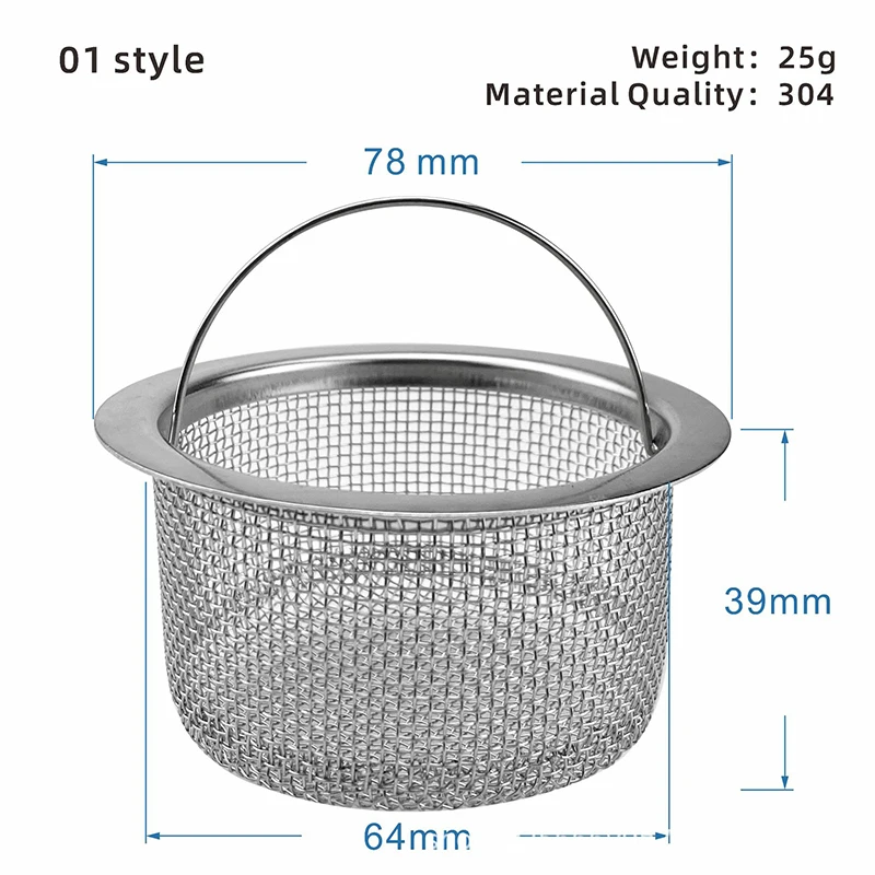 Filtre d’évier de cuisine en maille d’acier inoxydable, filtre de crépine d’évier de salle de bains, filtre de trou de vidange, piège à déchets, 1 pièce