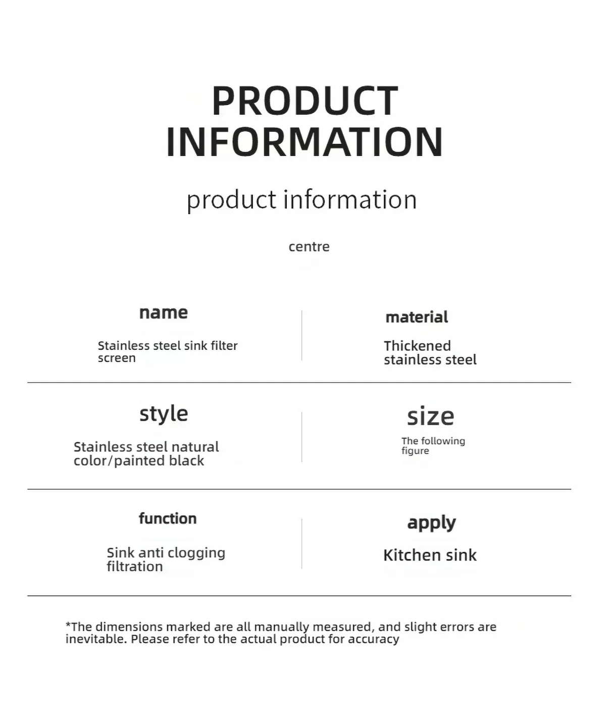 - Matériau: Acier inoxydable