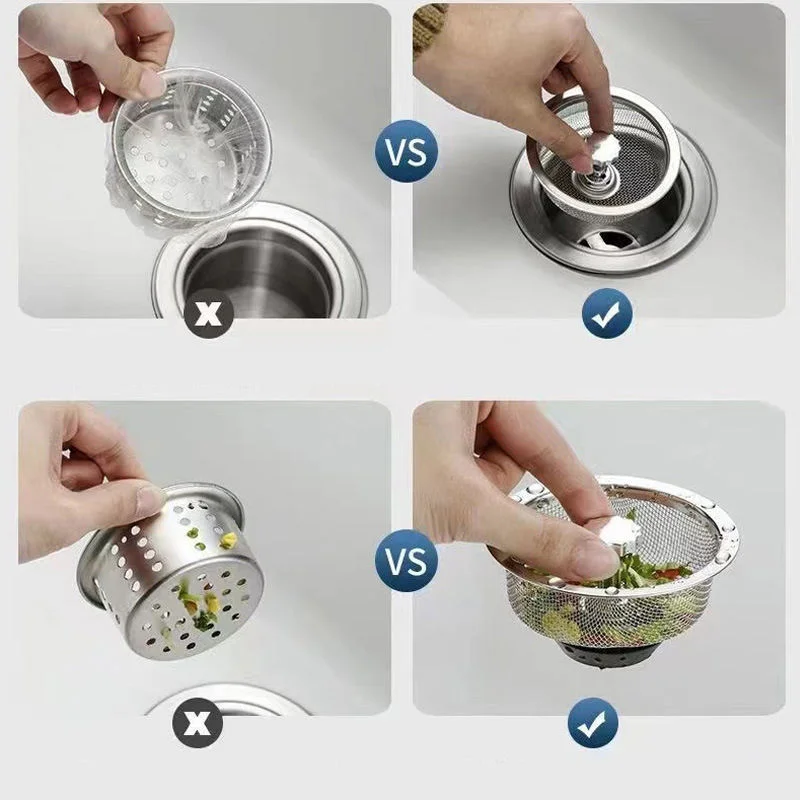 Suitable for various sink drains, can effectively filter residues, bid farewell to the original method of cleaning pipes with tweezers! Made of high-quality stainless steel, no rust, longer use! Easily and effectively prevent foreign matter such as hair, paper scraps, food residues, fabrics from entering the drain.