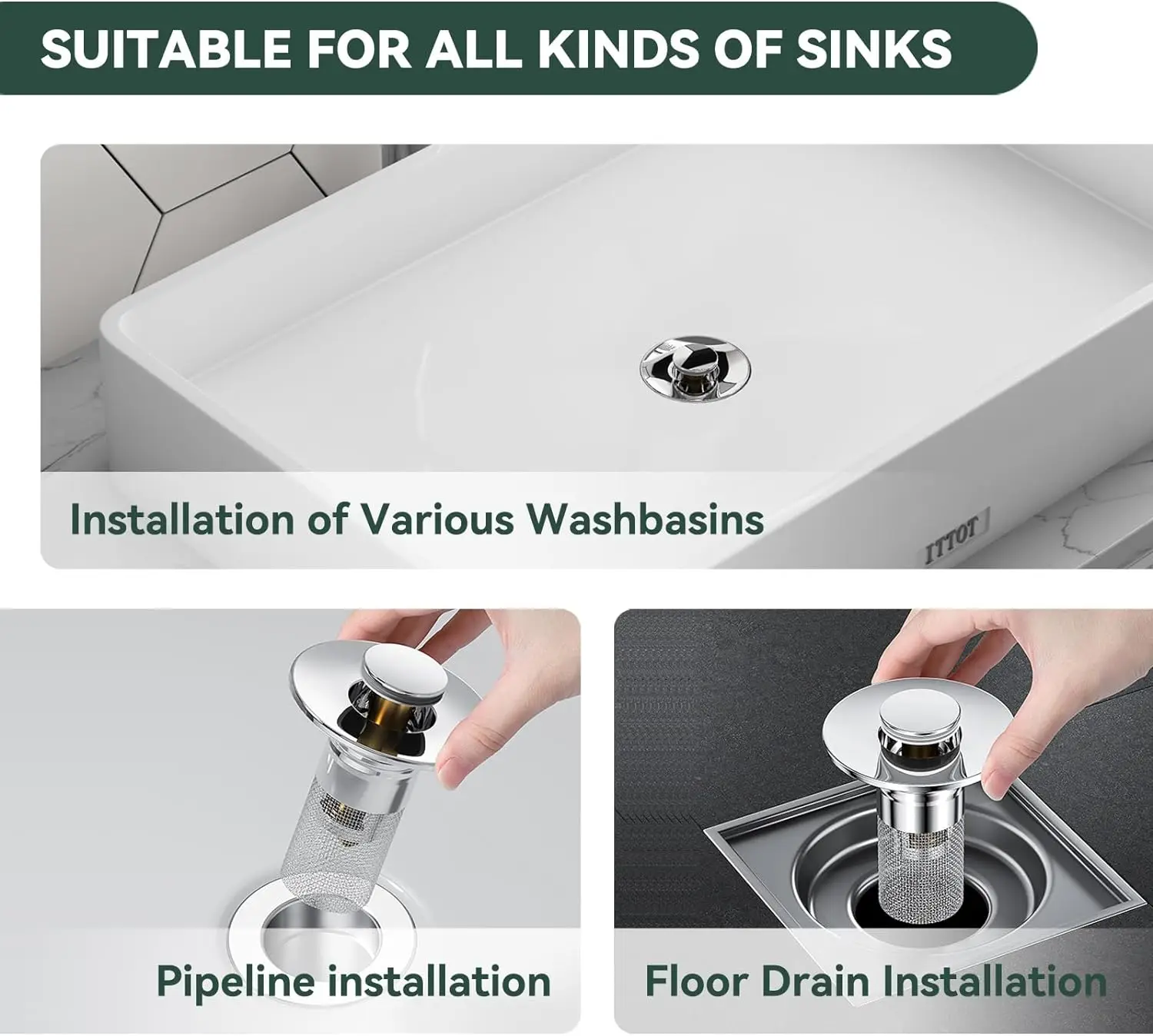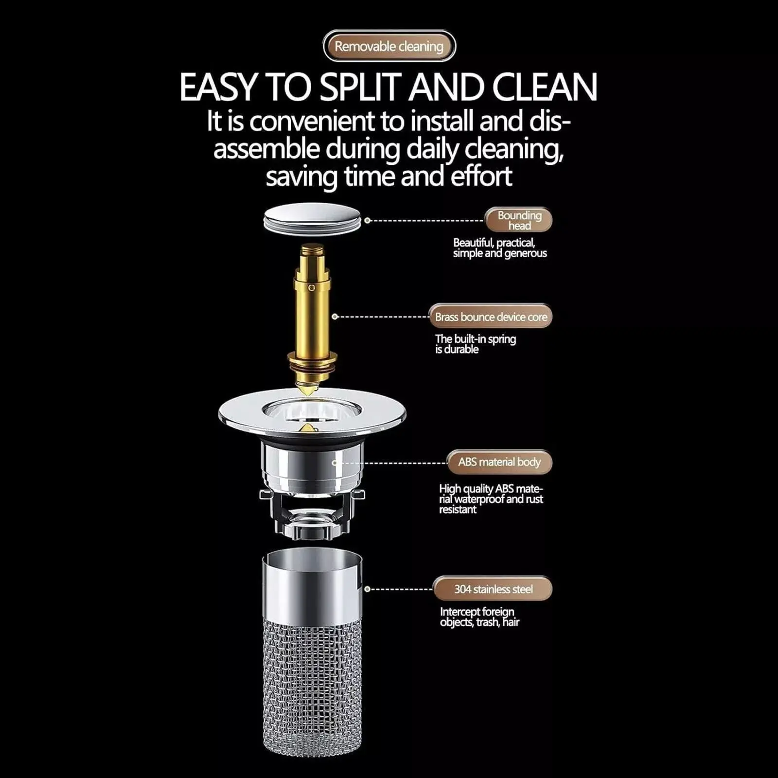 【Drainage efficace et prévention du colmatage】-Le bouchon d’évier pop-up est conçu avec un panier de colmatage intégré qui capture les cheveux et autres débris, les empêchant de pénétrer dans le drain. Cela aide à maintenir un drainage efficace et empêche les problèmes de colmatage.