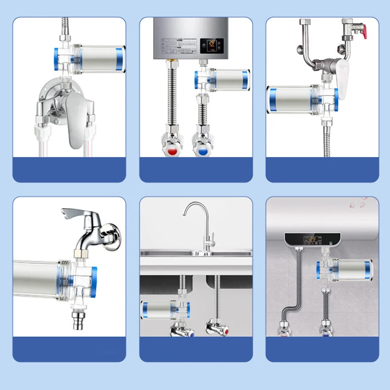 Can be install on pre-waterway of home main water pipe,purify your whole household water.Also can be installed on the waterway of washing machine or water purification system to improve their lifespan
