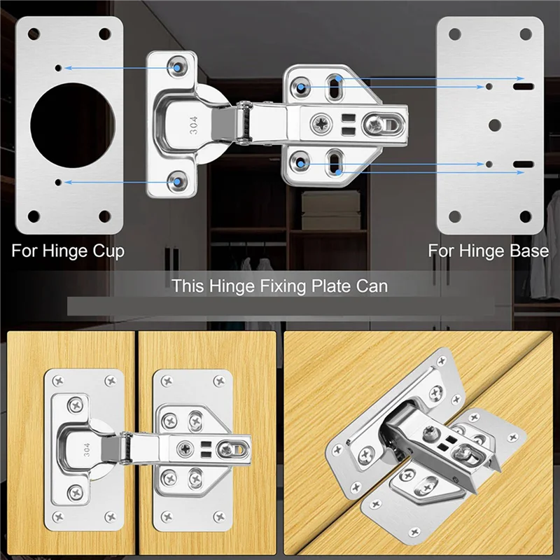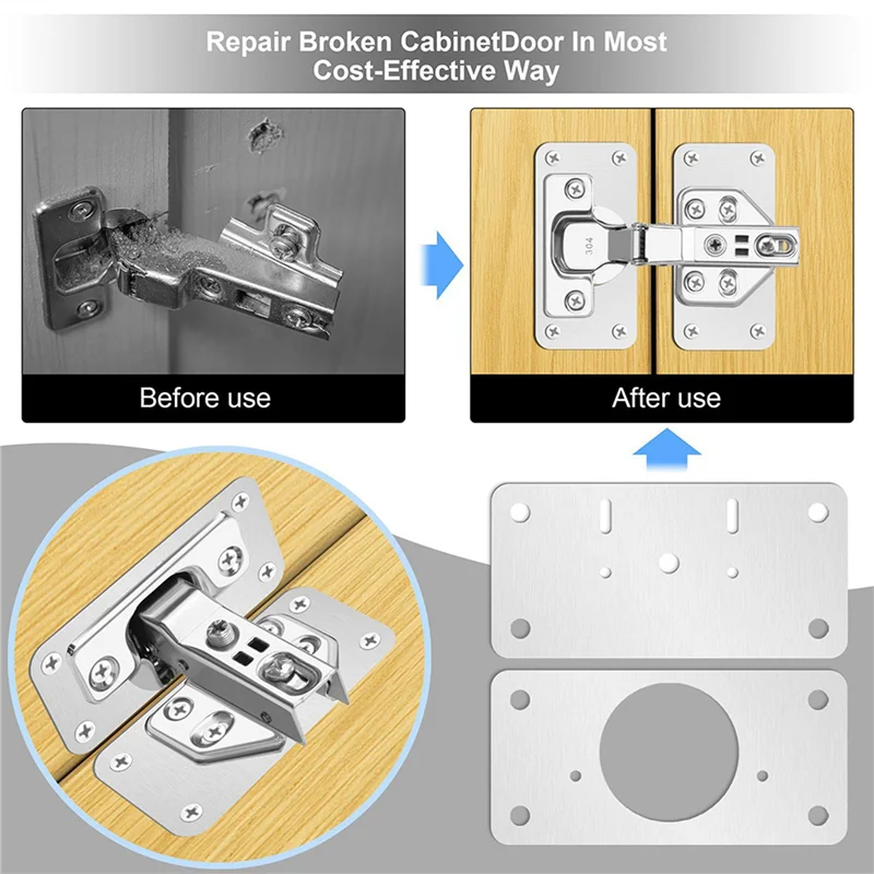 [Effective solution] Kitchen cabinets are subject to moisture erosion, frequent opening and closing, or the quality of the material is not up to par, resulting in poorly fixed hinges, falling off, and impossible to install. Our hinge mounting plate can solve these problems well, and does not require replacement of the cabinet door.