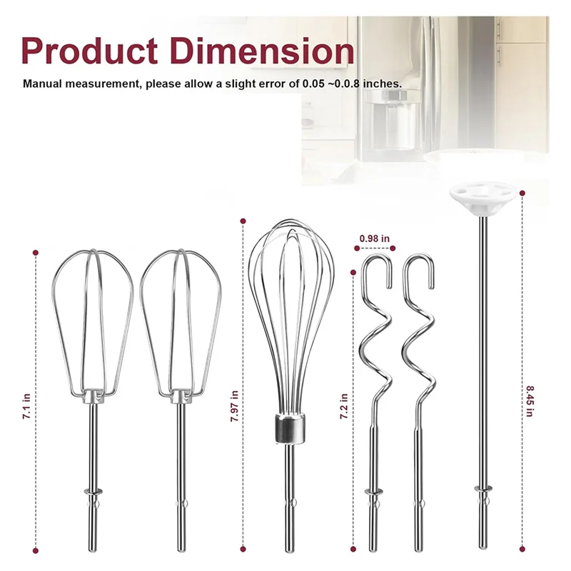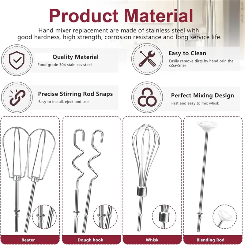 Easy Installation and Maintenance: These hand mixer accessories are designed for quick attachment and removal, making setup a breeze. Their stainless steel construction ensures they are easy to clean, maintaining their appearance and functionality over time.
