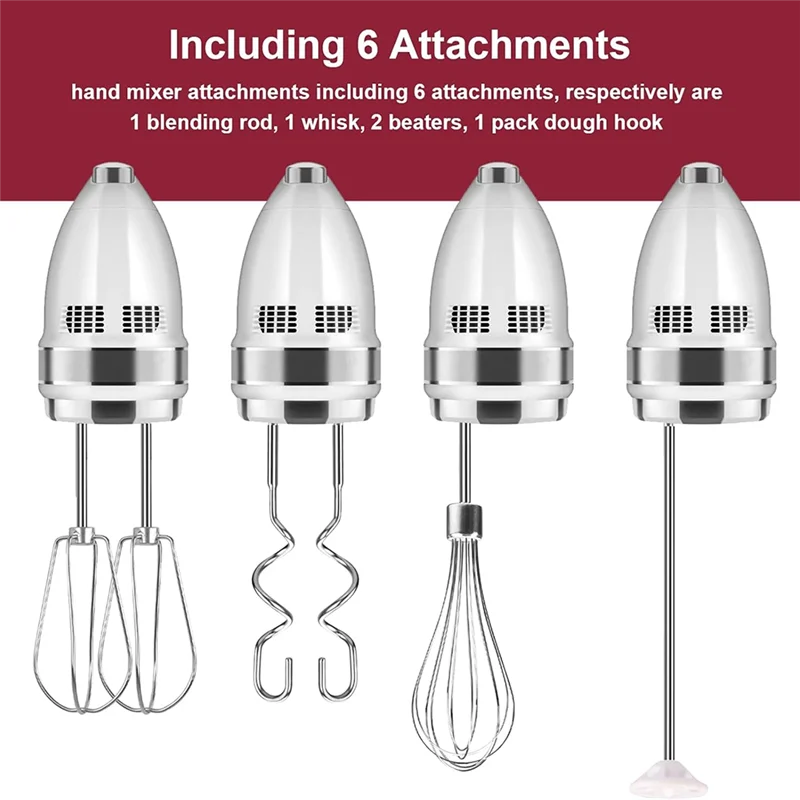 Enhanced Baking and Cooking Efficiency: The whisk is ideal for creating meringues and whipped cream, while the beaters are perfect for mixing batters and creams. The dough hooks aid in developing gluten for breads, and the blending rod is great for smoothies or milkshakes.