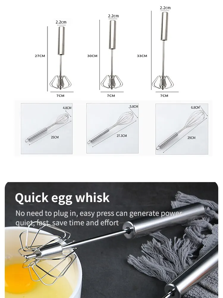 Fouet de cuisine en acier inoxydable, crémier rotatif semi-automatique, poignée de Vase en bois de hêtre, mélangeur à main