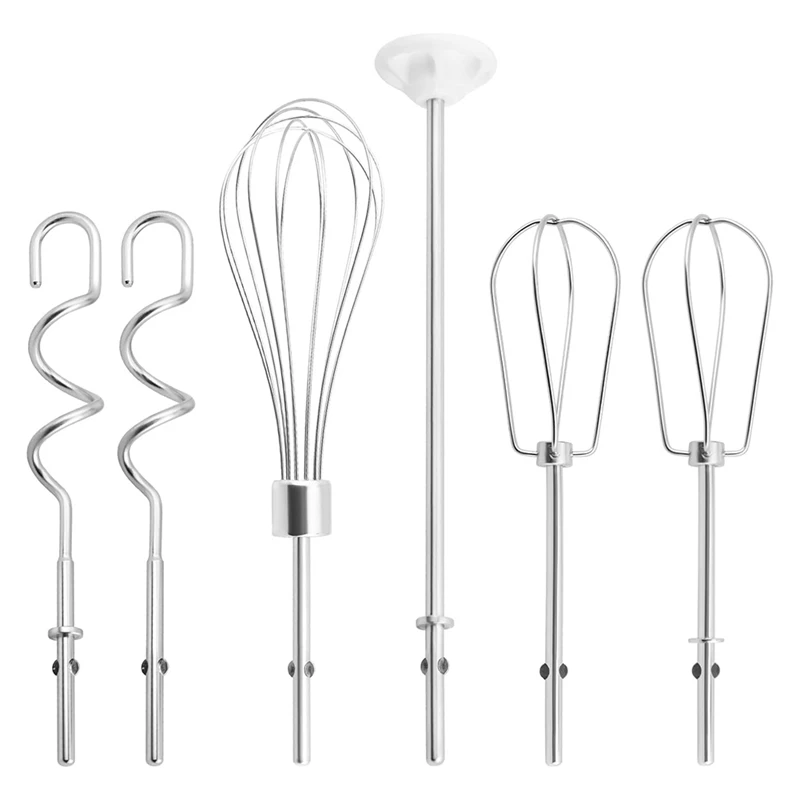 Efficacité de cuisson et de cuisson améliorée: le fouet est idéal pour créer des meringues et de la crème fouettée, tandis que les batteurs sont parfaits pour mélanger les pâtes et les crèmes. Les crochets à pâte aident à développer le gluten pour les pains, et la tige de mélange est idéale pour les smoothies ou les milkshakes.