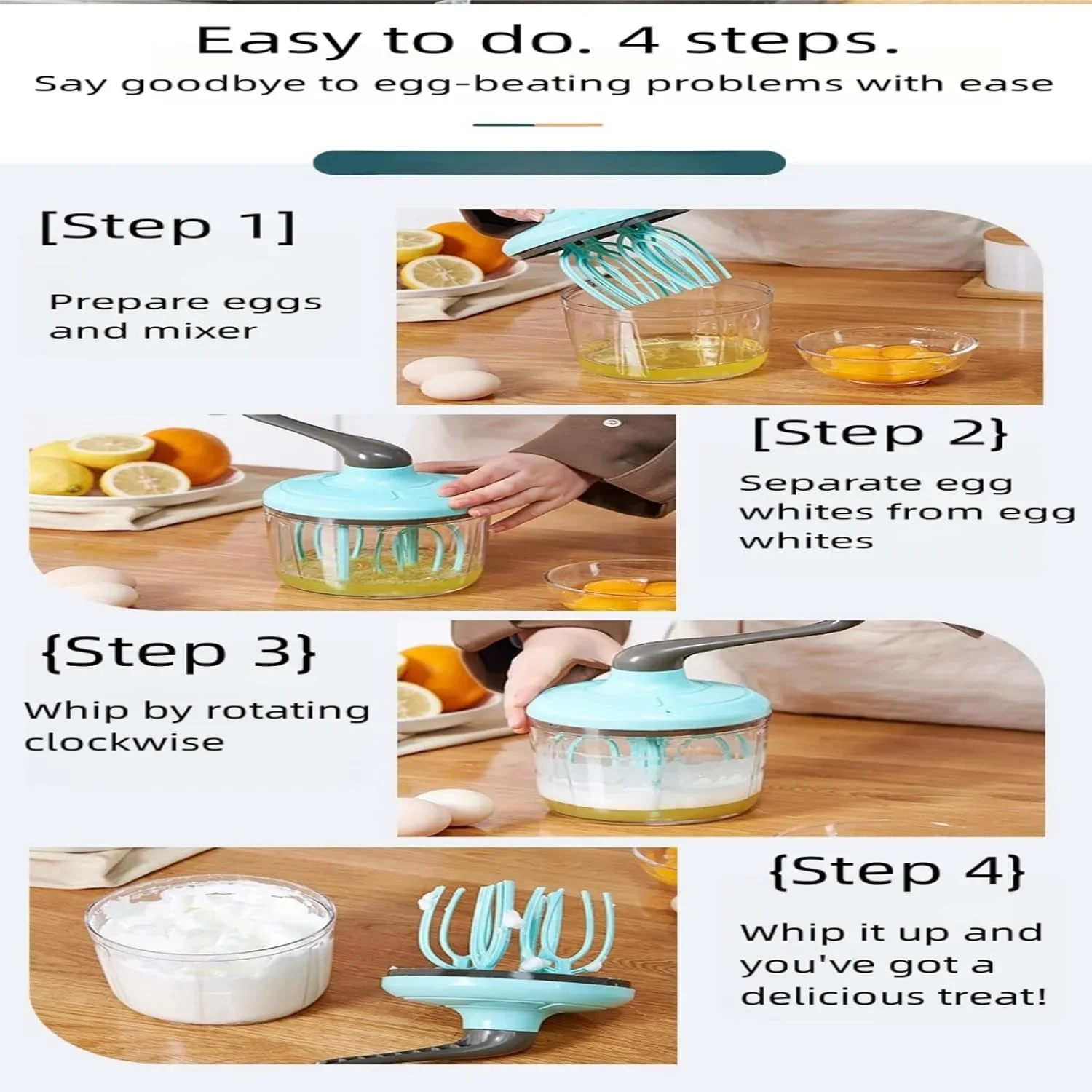 Facile à nettoyer: fabriqué à partir de plastique de qualité alimentaire, le mélangeur est écologique. Le séparateur d’oeufs est en acier inoxydable, assurant la durabilité, un nettoyage facile et sans rouille. Il suffit de laver à l’eau savonneuse, de rincer et de sécher.