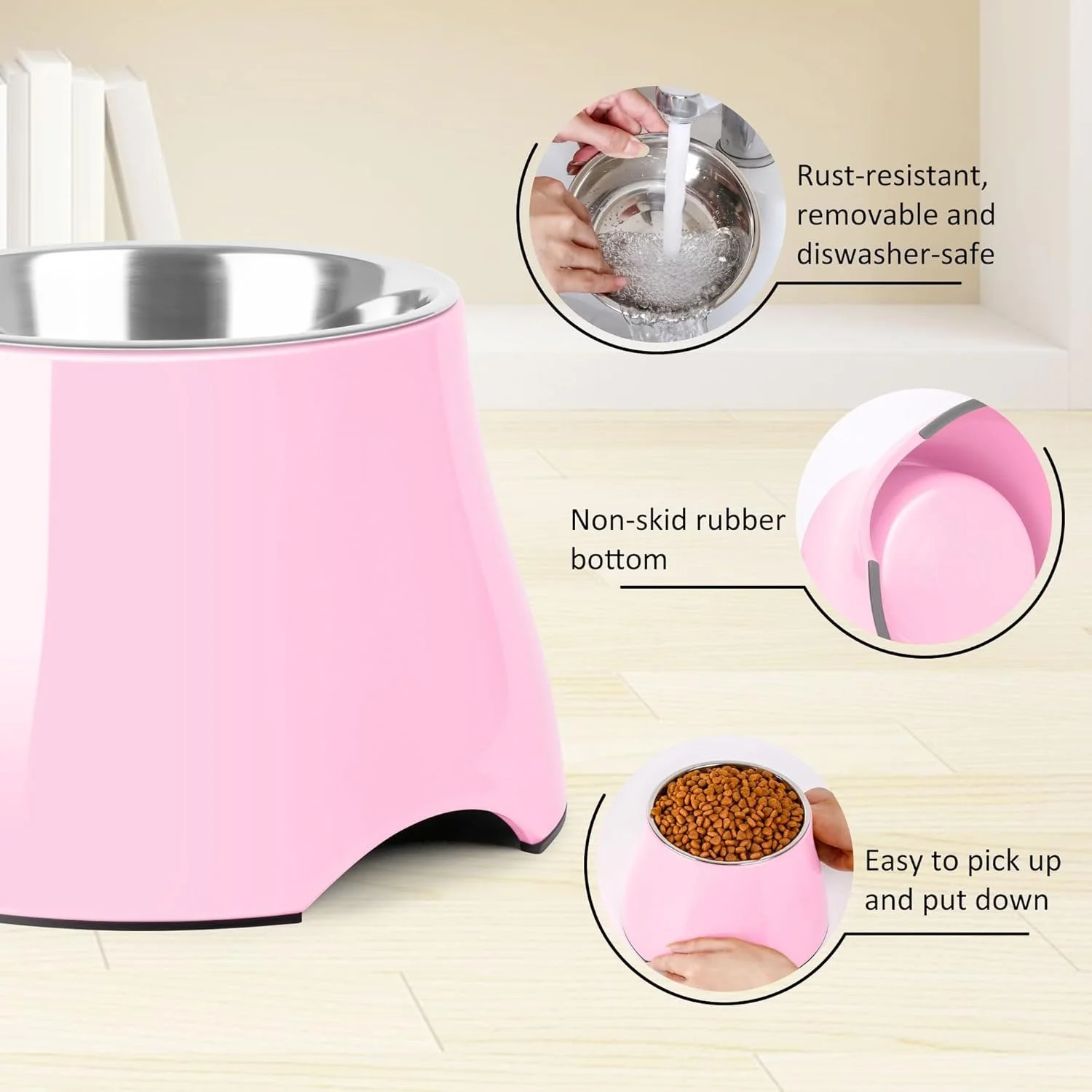 Ce bol pour chien surélevé Les bols en acier inoxydable sont amovibles, il est facile de les sortir pour les laver et les garder propres, de plus, il Les bols sont lavables au lave-vaisselle