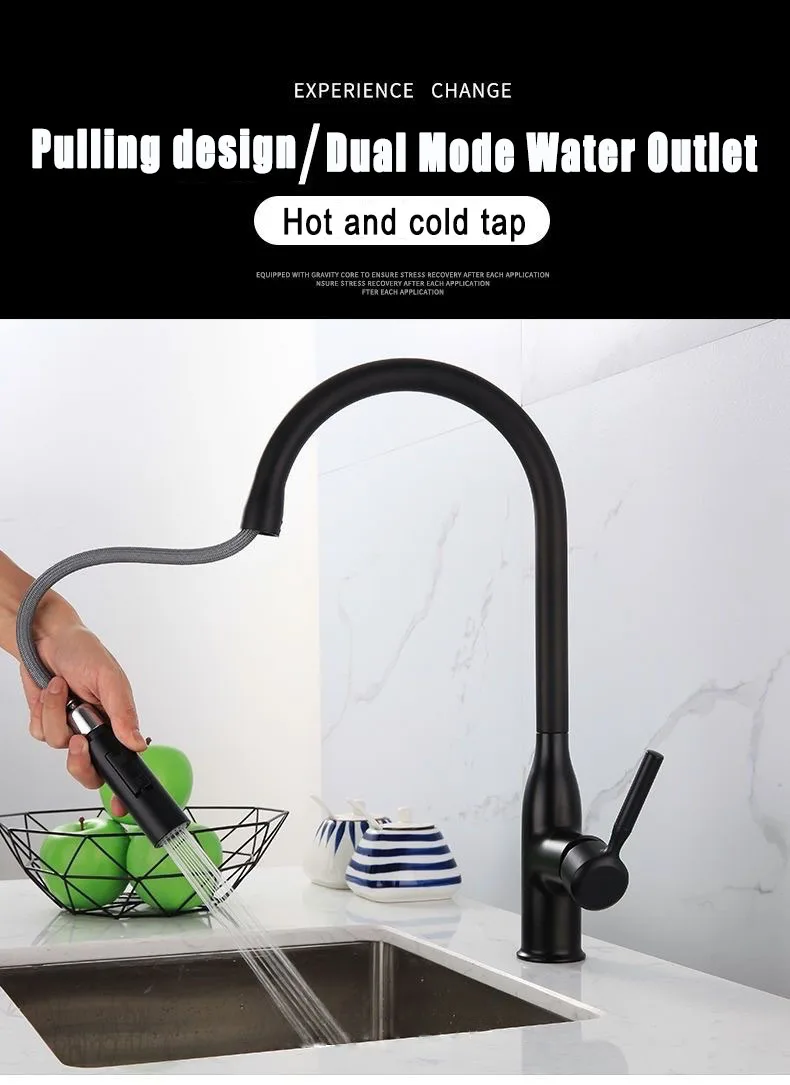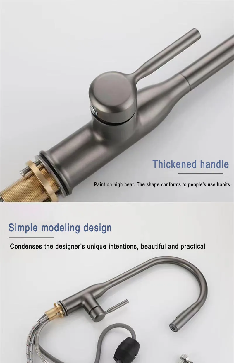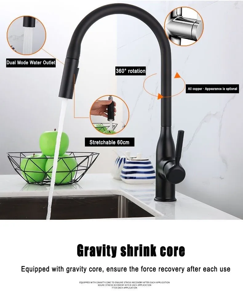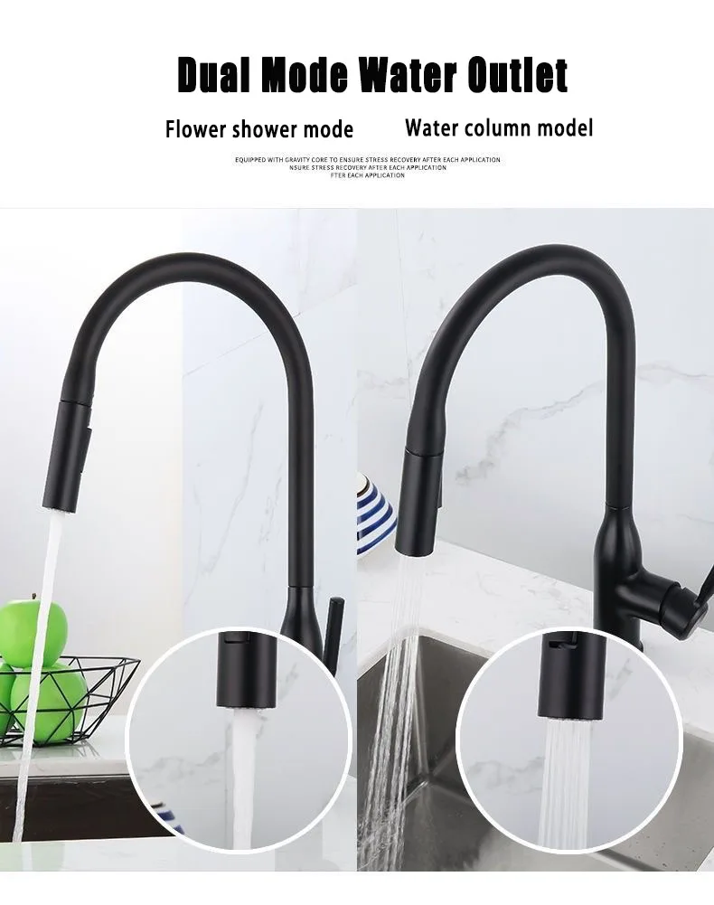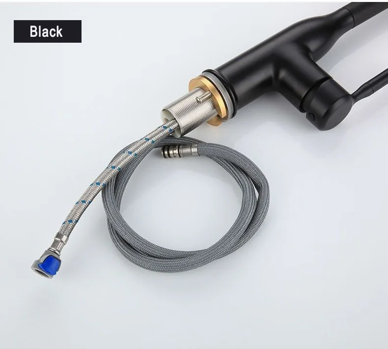 GEGVE Robinets de cuisine pour évier de cuisine Robinet en laiton chromé robinet flexible amovible conçu filtre mélangeur noir mat 2 en 1 cuivre