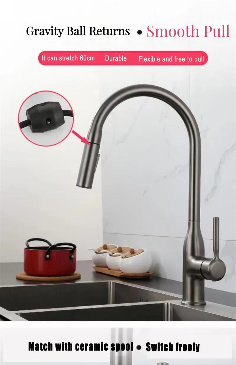GEGVE-Robinet flexible en laiton chromé pour évier de cuisine, robinet de cuisine, PLANremovable, mélangeur de filtre, 2 en 1