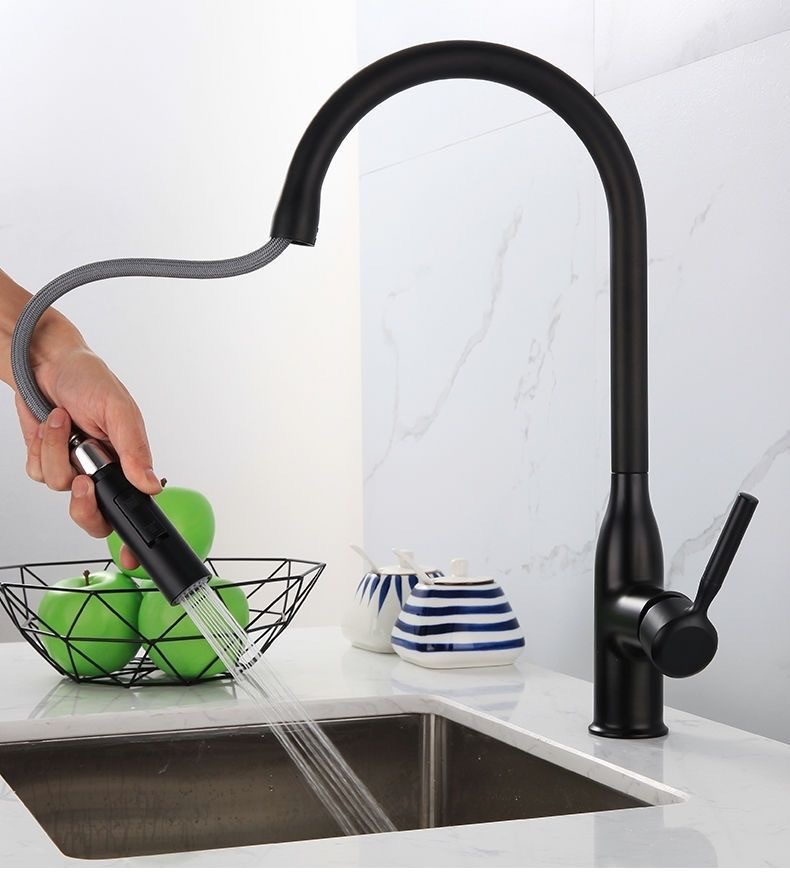 GEGVE Robinets de cuisine pour évier de cuisine Robinet en laiton chromé robinet flexible amovible conçu filtre mélangeur noir mat 2 en 1 cuivre