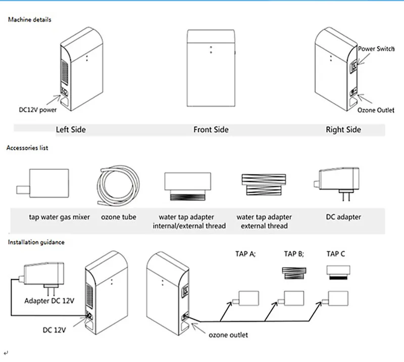 C’est une machine ozonée intelligente de l’eau s’appliquent également sur la cuisine, l’ozone sûr est mélangé avec l’eau et produit l’eau ozonée pour répondre aux besoins de la vie quotidienne et du restaurant. L’eau avec une concentration élevée en ozone peut être utilisée pour la désinfection et la stérilisation des aliments et des ustensiles de cuisine, peut également éliminer les germes, le chlore bactérien et résiduel dans l’eau du robinet.