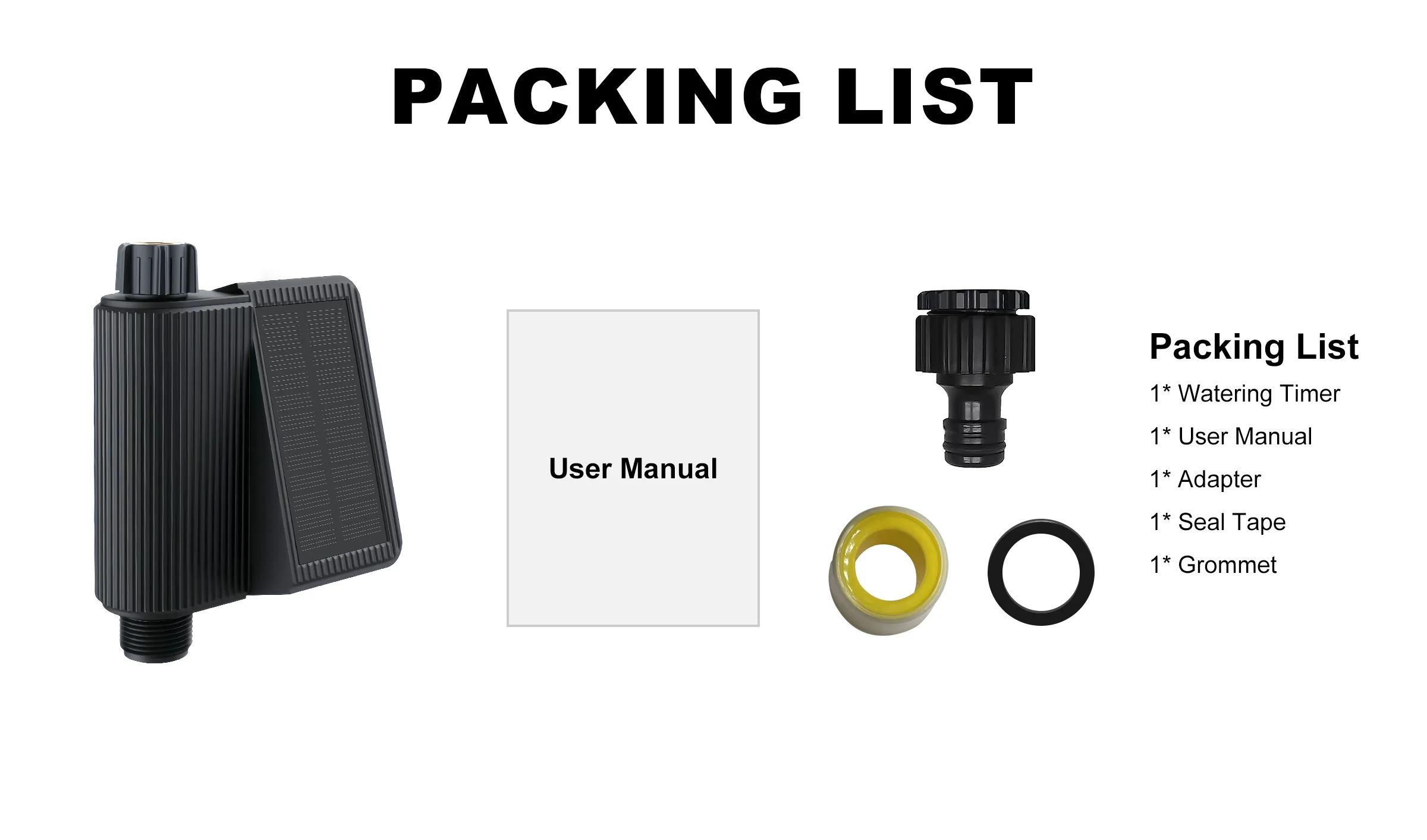 Vous craignez toujours d’oublier d’arroser ou d’éteindre la minuterie d’eau?Soyez assuré maintenant avec notre minuterie de robinet à tuyau.Vous pouvez facilement programmer des programmes d’arrosage jusqu’à 10 ensembles pour l’irrigation de votre jardin, y compris également la quantité d’arrosage à chaque fois.Même lorsque le réseau se dépasse, le programme programmé s’exécute automatiquement.Ne craignez plus de gaspiller de l’eau ou de perdre vos plantes à cause du manque d’eau.