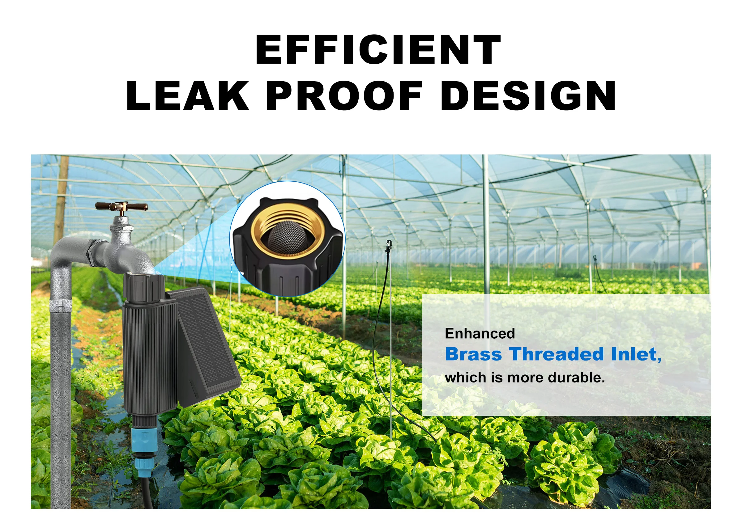 Faites l’expérience d’un irrigation sans tracas avec notre minuterie d’eau, conçue pour la longévité.Une fois installée, sa batterie alimente jusqu’à 10 ans, grâce à un panneau solaire efficace qui se charge même par temps nuageux et sous une faible luminosité, garantissant un fonctionnement continu tout en économisant de l’énergie.Adoptez le respect de l’environnement et réduisez votre empreinte carbone en exploitant une énergie propre.