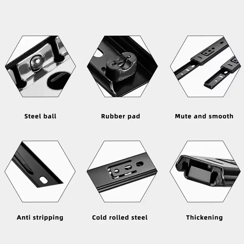 Glissières de tiroir à trois sections de 8 à 20 pouces – chenilles de tiroir en acier laminées à froid, glissières à fermeture lisse, pour meubles d’armoires.