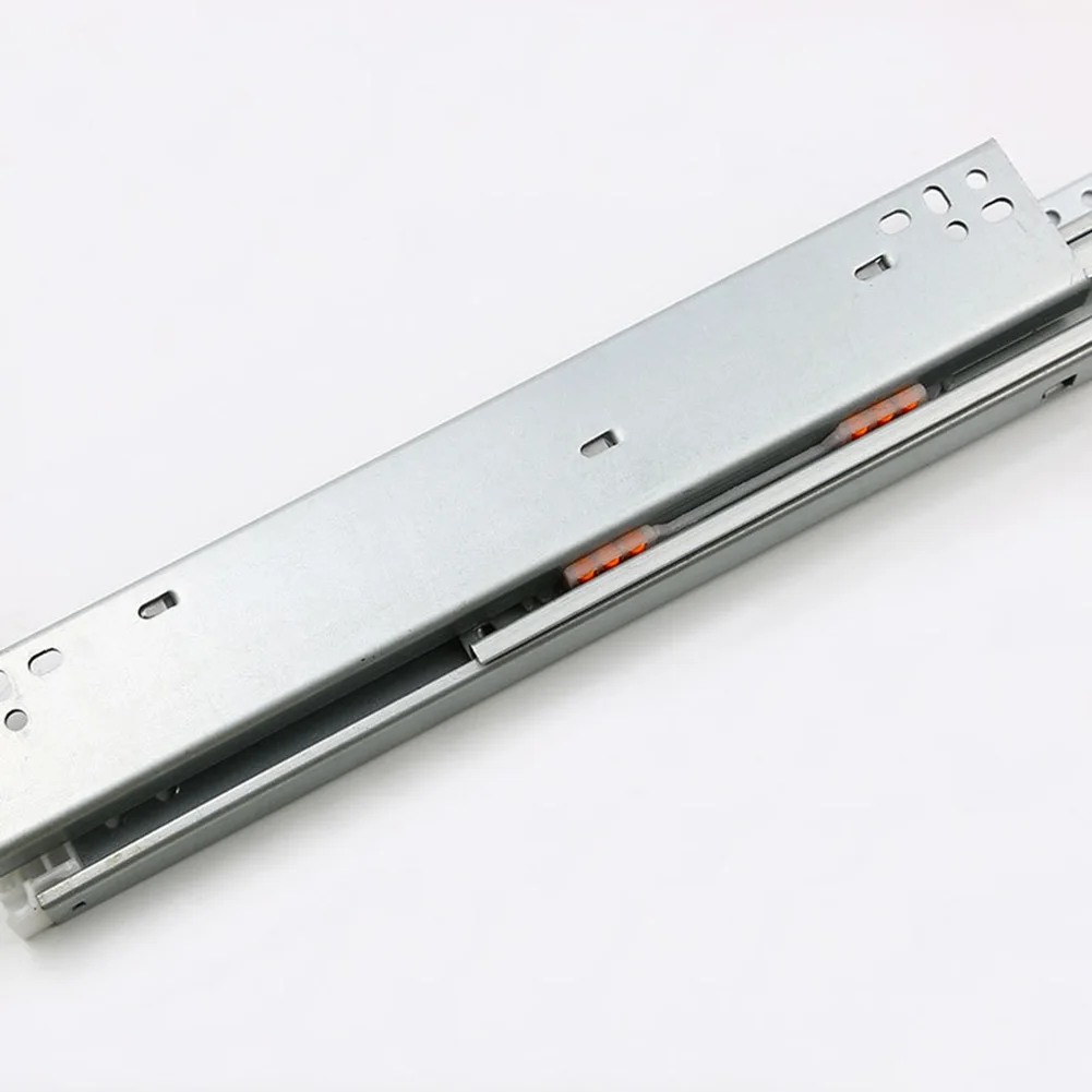 * Rails de tiroir à fermeture douce montés au sol : ces guides de sol sont conçus pour une installation facile et offrent un fonctionnement fluide et silencieux avec une réduction du bruit jusqu’à 30 décibels.Contrairement aux rails montés sur le côté, ces rails montés au sol éliminent les oscillations latérales et peuvent être couverts pour une finition plus robuste et visuellement attrayante.