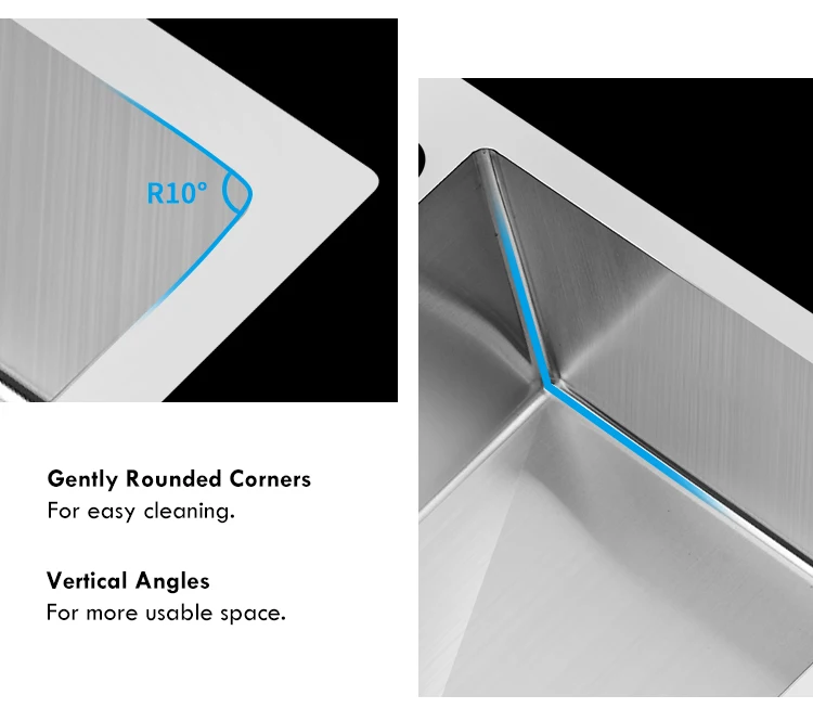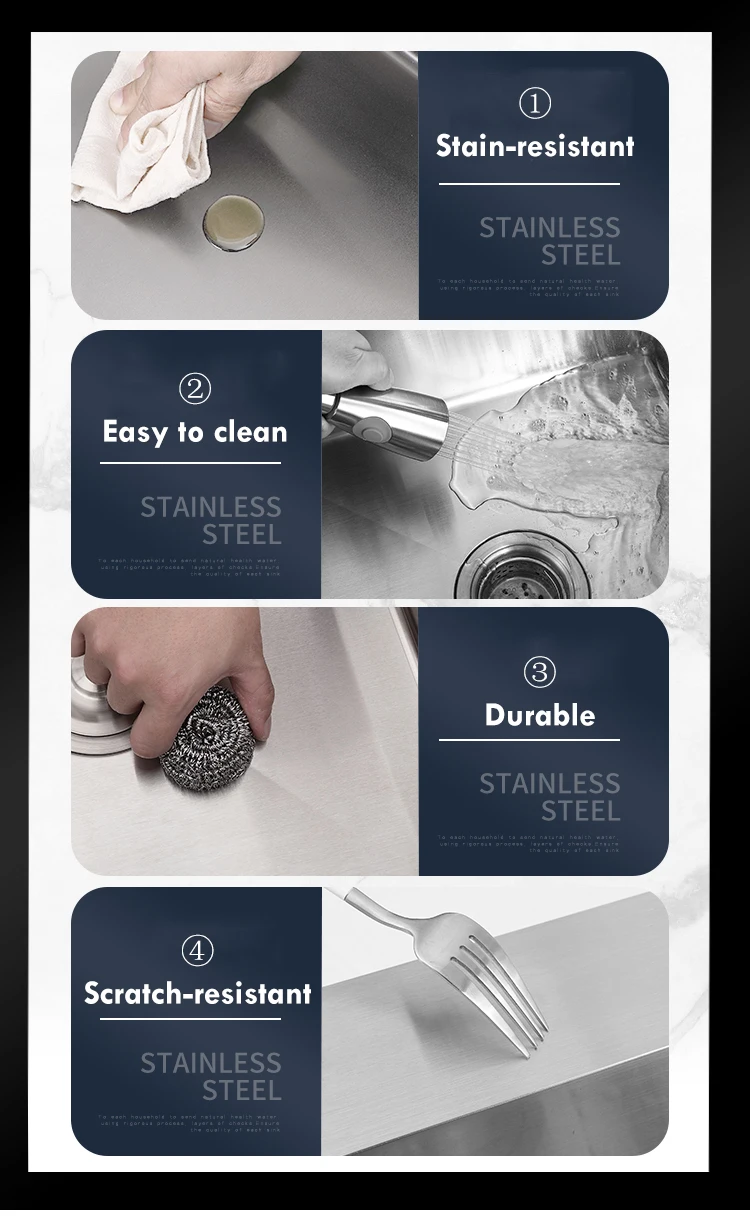 Finition de qualité commercialeÉviers en acier inoxydable SUS304 extra-résistants avec une finition résistante à l’usure impeccable et facile à nettoyer.