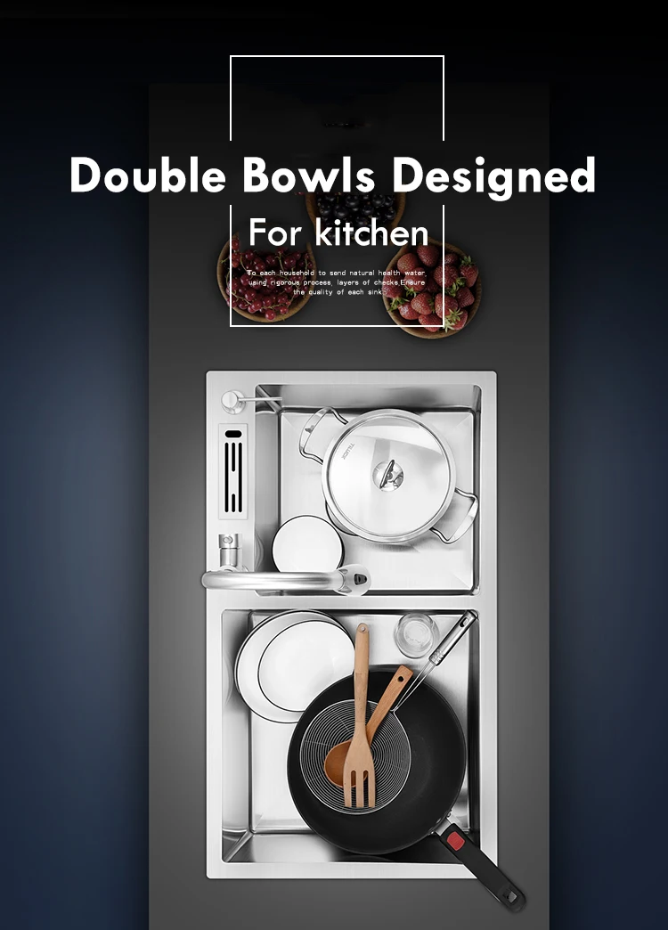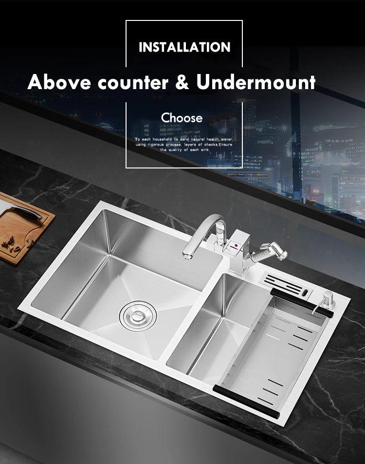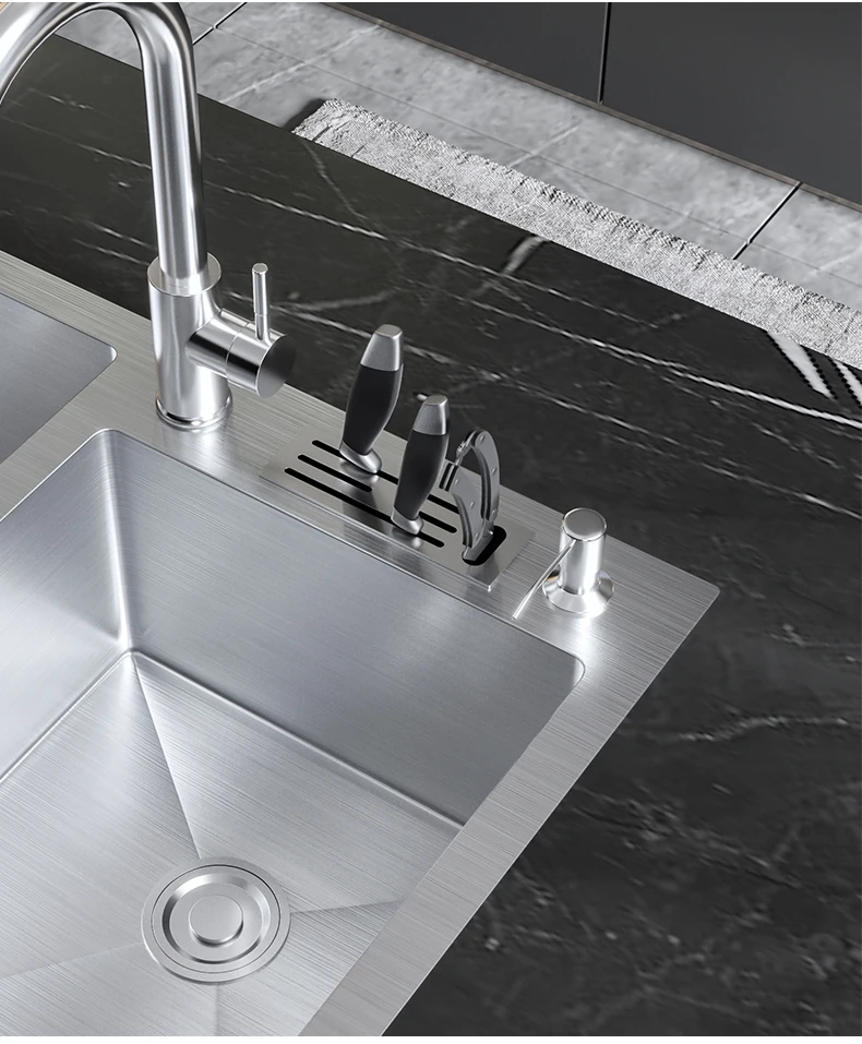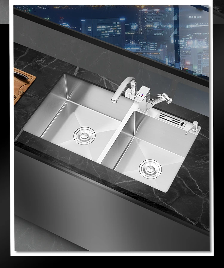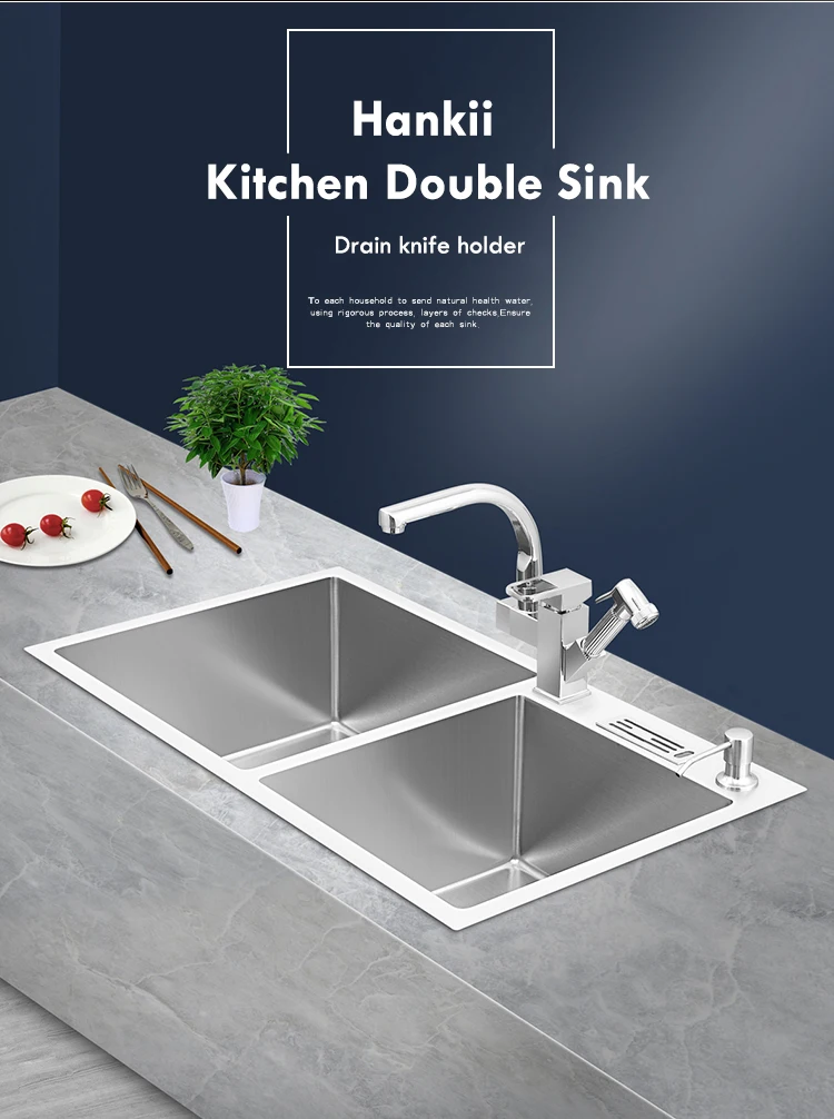 Hanki KI-8245 SUS304 en acier inoxydable grand évier de cuisine fait à la main réservoir Double cuvette évier pour luminaire de cuisine avec porte-couteau accessoires
