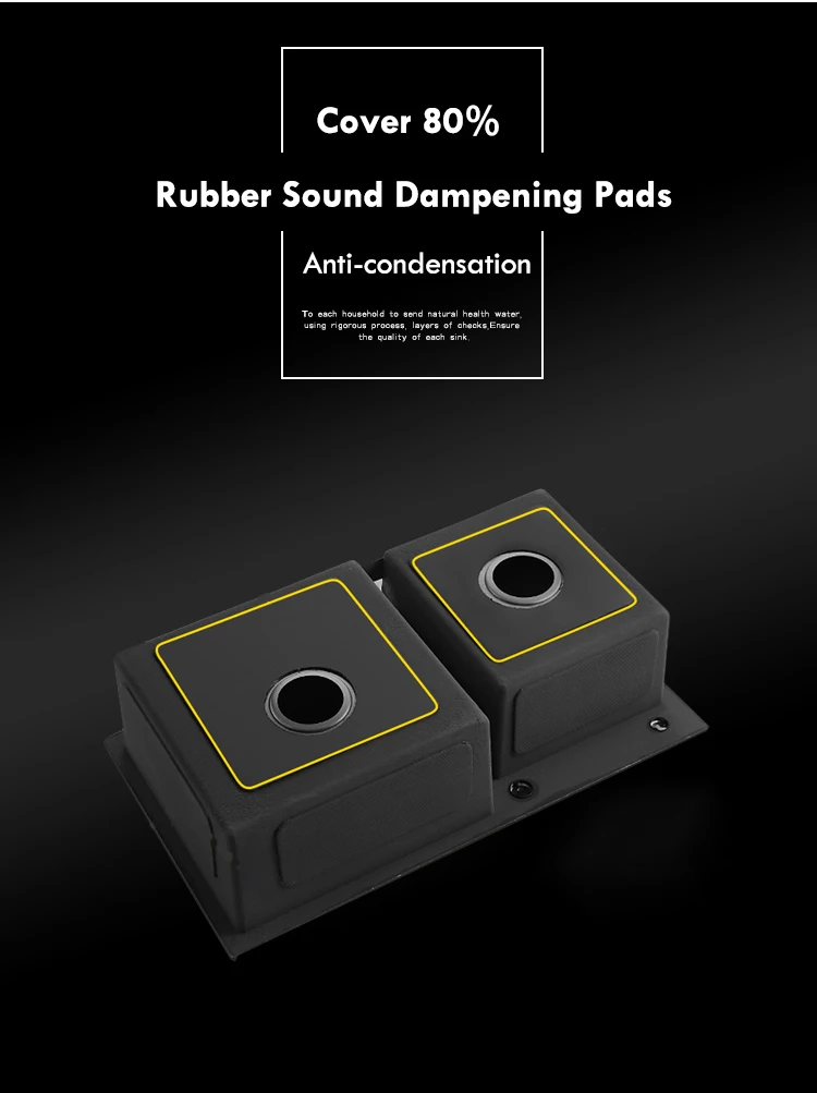 Caoutchouc extra-épaisTampons insonorisants couvrent 80% de base de l’évier pour absorber le bruit et les vibrations.