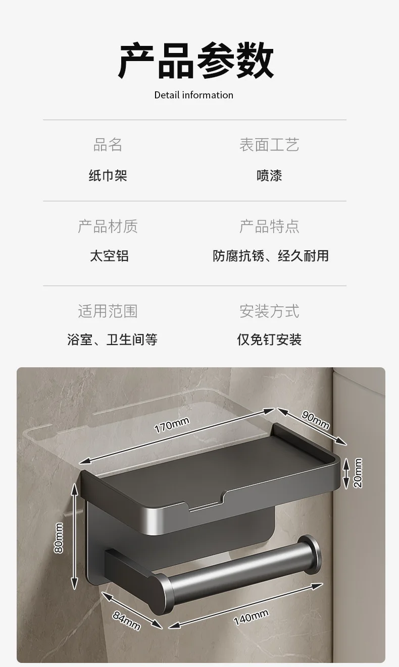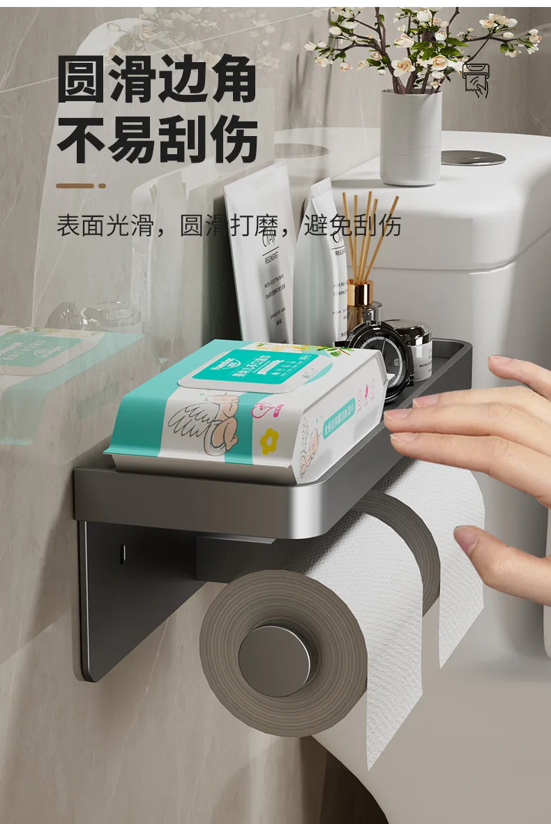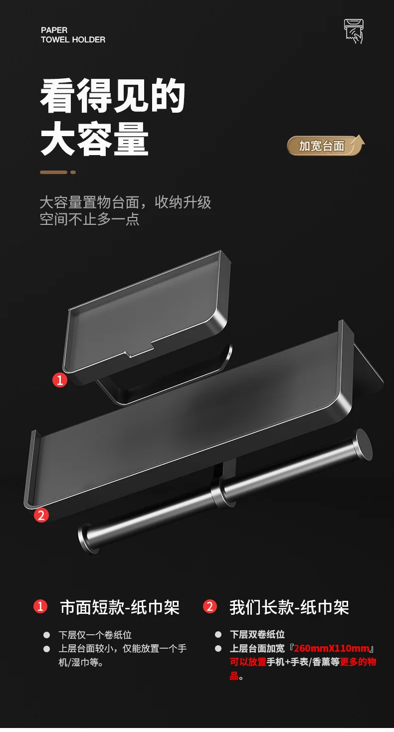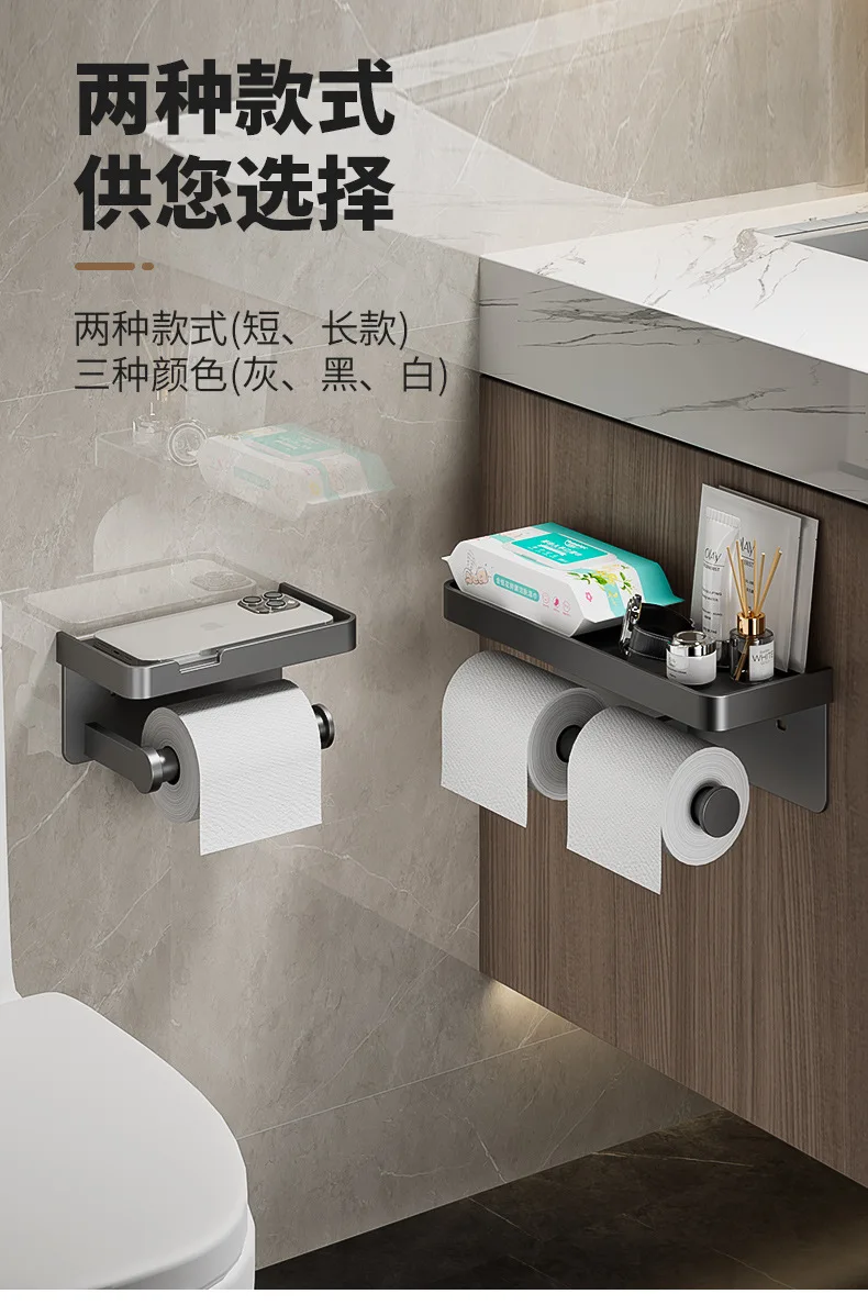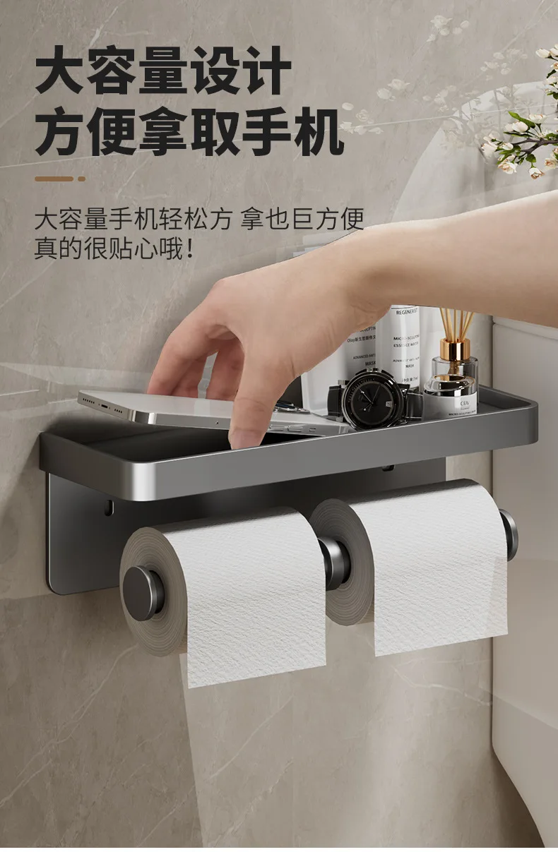 Grand Porte-Rouleau de Papier Toilette Mural avec Rangement, Support pour Téléphone Portable |