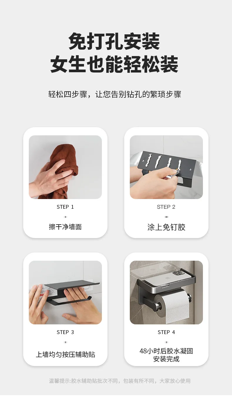"Ce porte-rouleau de papier toilette mural est vraiment une excellente acquisition. La construction est solide et durable, et le rangement pour le téléphone portable est très pratique. Bien que l'installation ait nécessité un peu plus de temps que prévu, le résultat final est très satisfaisant. J'apprécie particulièrement le design élégant qui s'intègre parfaitement dans ma salle de bain. C'est un produit de grande qualité que je recommande vivement."