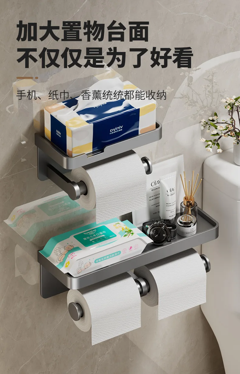 Grand Porte-Rouleau de Papier Toilette Mural avec Rangement, Support pour Téléphone Portable |